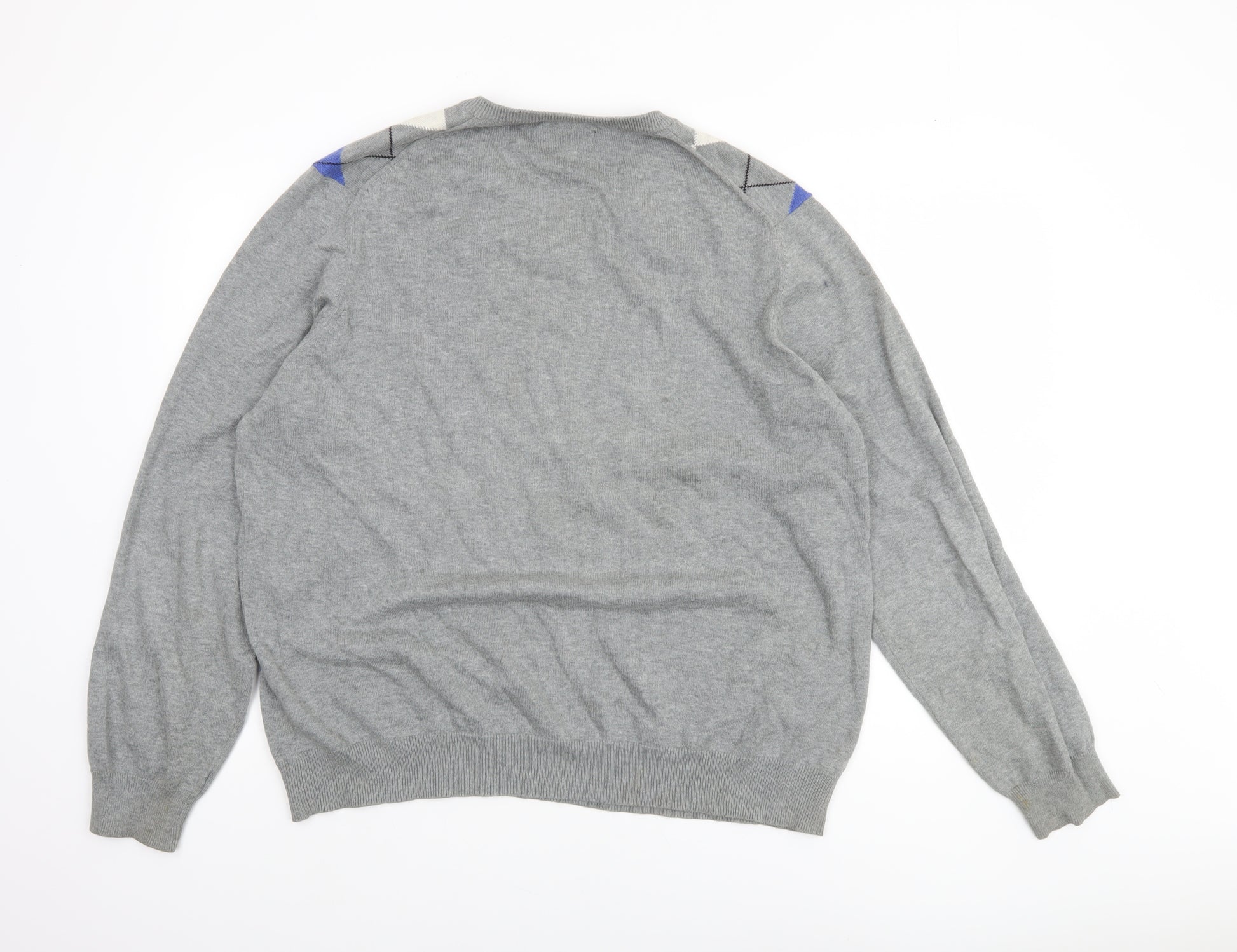 Blue Harbour Mens Grey Argyle V-Neck Jumper XL Cotton