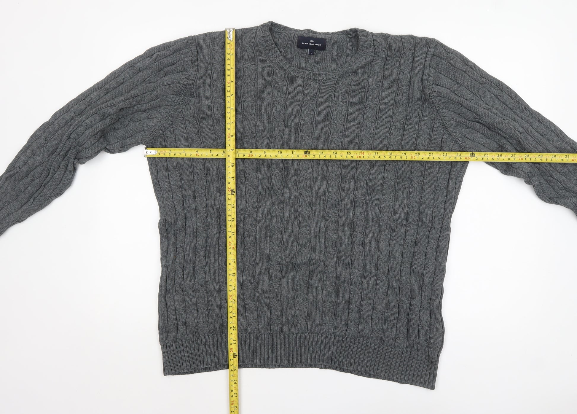 Blue Harbour Men's Grey Cable-Knit Cotton Jumper L