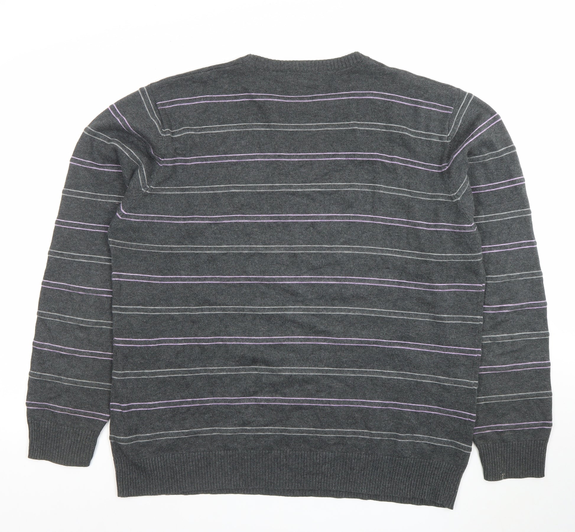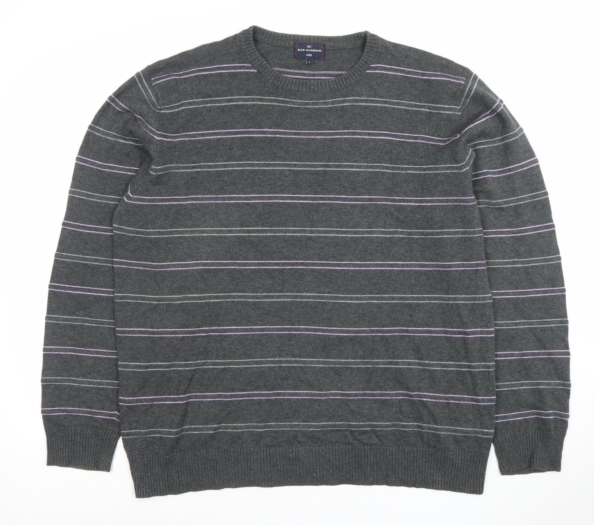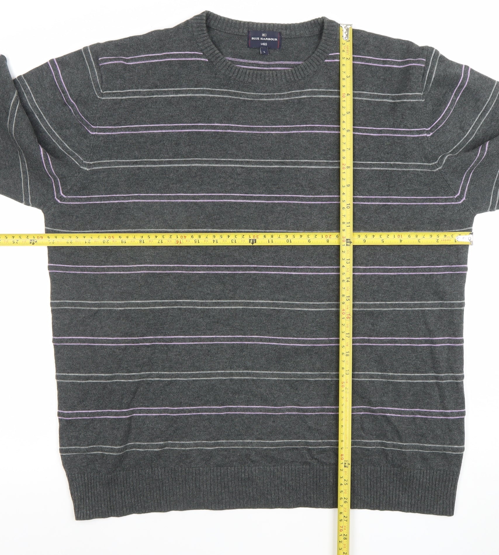 Blue Harbour Men's Grey Striped Cotton Crew Neck Jumper L
