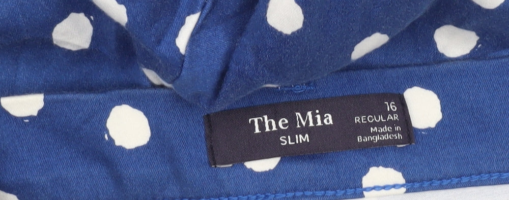 Step out in style with these chic Marks and Spencer blue polka dot trousers, designed for both comfort and versatility. Crafted from a durable blend of cotton, polyester, and elastane, these trousers ensure a comfortable and flattering fit. The slim fit and flat front style offer a modern, sophisticated look, perfect for any occasion. Designed for women, these trousers are a wardrobe staple, featuring an elastic waist for ease of wear. The playful polka dot pattern adds a touch of fun to your attire, making them appropriate for casual outings or more relaxed settings. Ideal for any season, these versatile trousers will add a vibrant pop of colour to your outfit. The premium materials ensure a long-lasting wear and easy maintenance, with a machine washable fabric. Although these trousers are in excellent condition, with no visible marks or damage, the lack of original sales tags is reflected in the competitive pricing. Enhance your wardrobe today with these eye-catching Marks and Spencer polka dot trousers, designed to bring comfort and style to your everyday look.