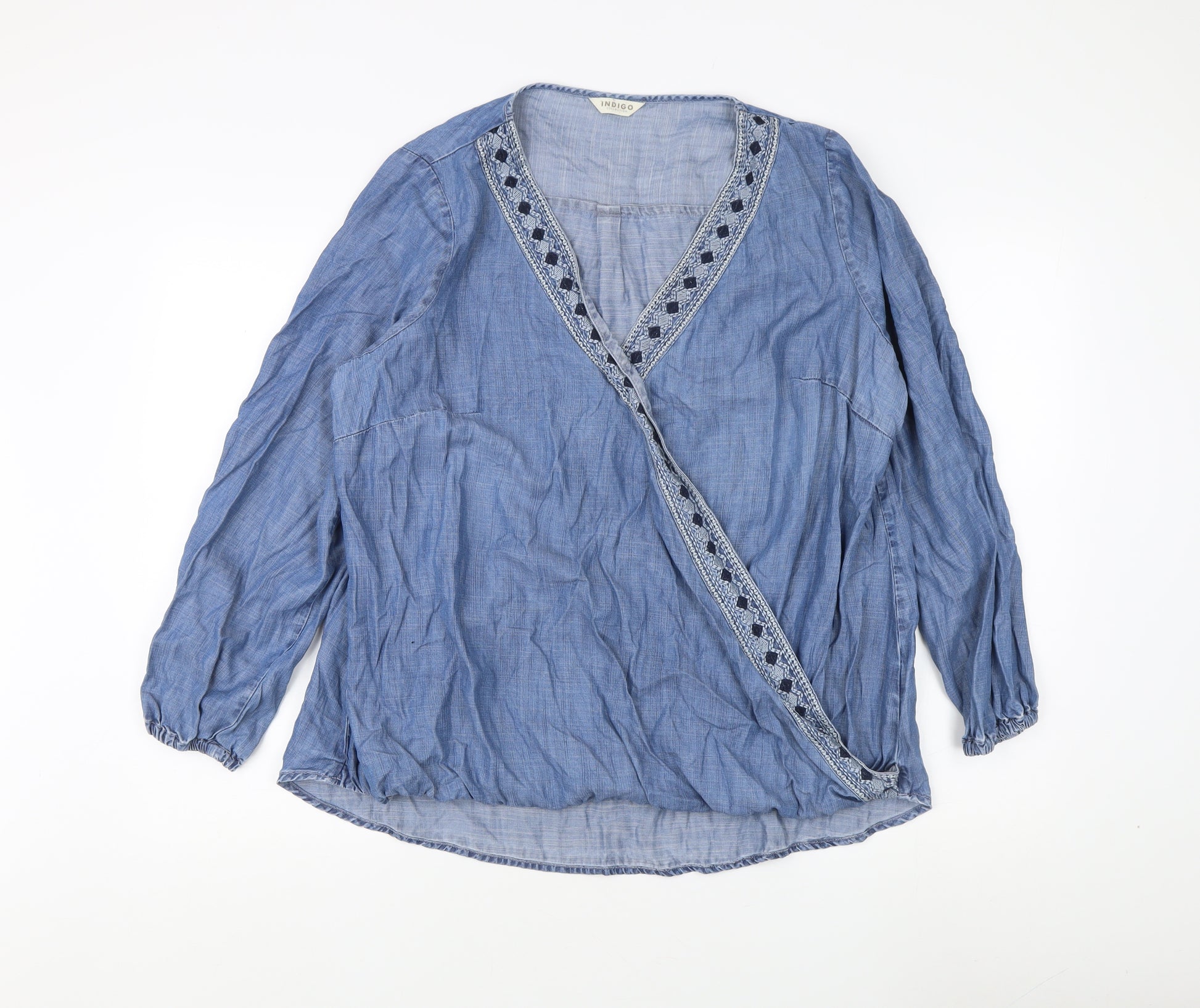 Step into effortless sophistication with this Marks and Spencer tunic blouse. Part of the esteemed Indigo Collection, it embodies elegance and comfort in equal measure. Crafted from 100% Lyocell, known for its silky softness and durability, this chambray piece is perfect for the changing seasons of spring and summer. Its serene blue hue adds a calming touch to any outfit, making it a versatile addition to your wardrobe. The blouse features an embroidered V-neckline that beautifully enhances its overall look while adding an artisanal charm. The long sleeves provide understated elegance and make it suitable for various occasions, from a casual day out to a breezy evening gathering. The relaxed fit ensures comfort and freedom of movement, further complemented by its classic tie closure. This blouse captures a timeless silhouette with its tunic style, offering a flattering cut that drapes beautifully. Easy to care for, it's machine washable, allowing for hassle-free maintenance. Despite being gently worn, it remains in very good condition, showcasing quality craftsmanship expected from Marks and Spencer. Whether paired with your favourite jeans or a sleek skirt, this blouse is sure to make a stylish statement. Embrace the subtle charm of the Indigo Collection and elevate your everyday wear with this sophisticated piece today.