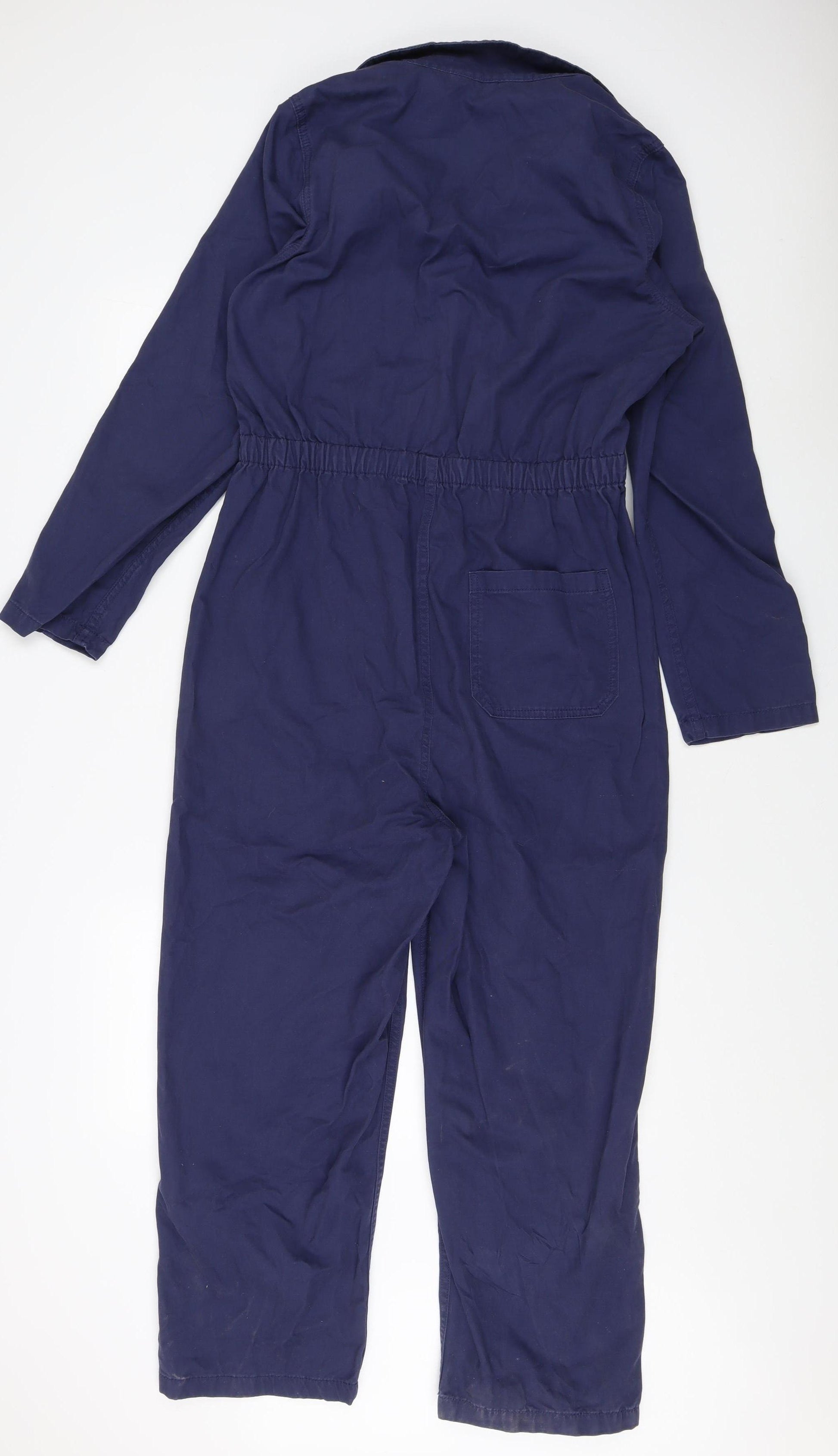 Discover comfort and style with this versatile Marks and Spencer women's jumpsuit in a classic blue hue. Perfect for casual outings, this one-piece garment is crafted from 100% cotton, ensuring a soft, breathable experience. Its regular fit and long sleeves provide a flattering silhouette suitable for any body type. Featuring a secure zip closure, this collared jumpsuit includes convenient pockets and an elastic waist for added functionality and ease. Its straight-leg style and unpatterned design make it a timeless addition to any wardrobe, ideal for all-season wear. Despite slight fabric wear, it remains in excellent condition, ready to elevate your everyday look. Enjoy the balance of modernity and tradition with this quality piece that's machine washable for effortless care. Whether dressing up or down, this jumpsuit promises versatility, making it the go-to choice for women who appreciate style and comfort in equal measure. Grab this chic one-piece today and experience the elegance and practicality synonymous with Marks and Spencer.