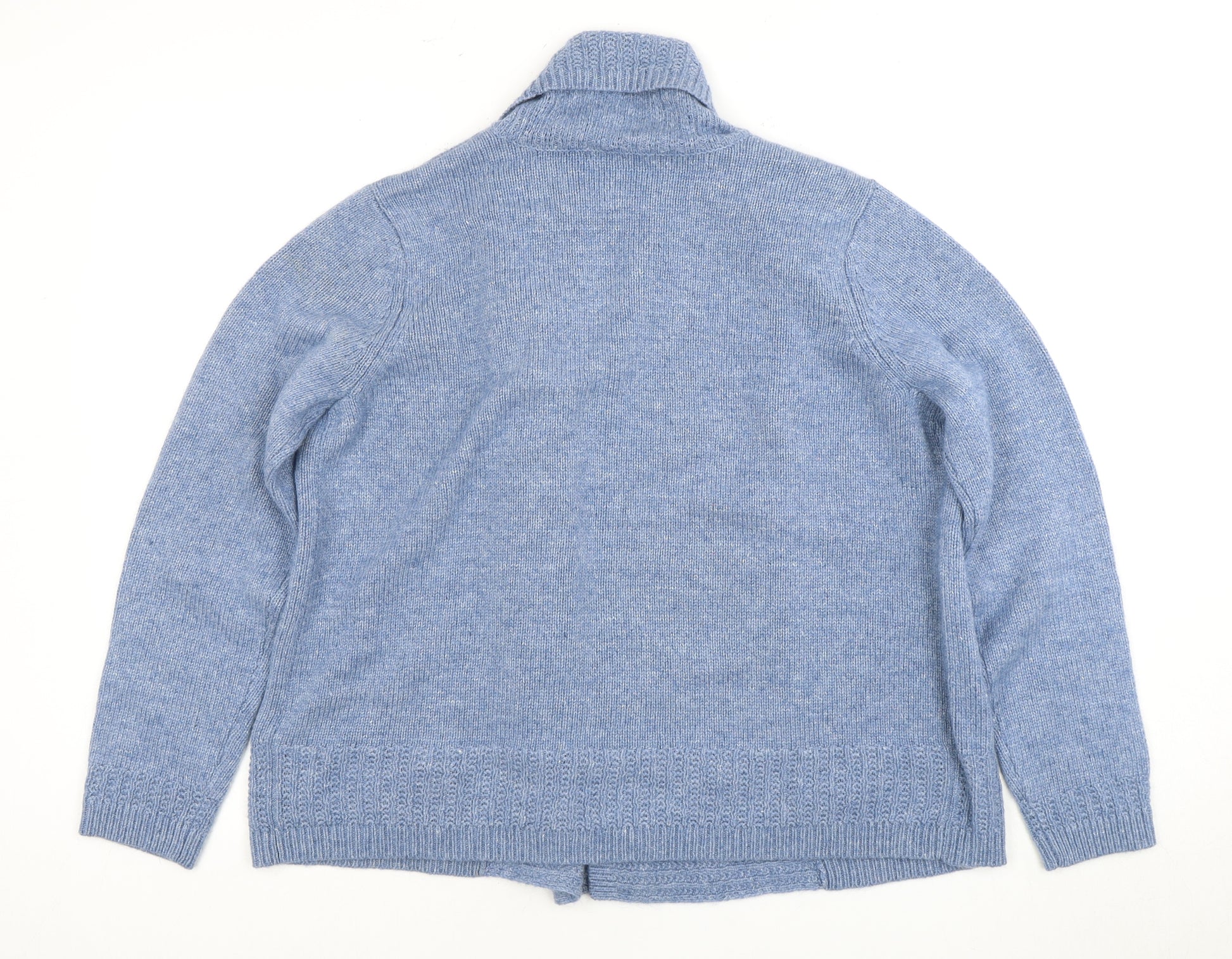 Embrace comfort and style with this elegant blue cardigan from Marks and Spencer, designed for women who value quality and warmth in their wardrobe staples. Crafted in a luxurious blend of viscose, wool, polyamide, and angora, this cardigan promises not only a stylish appearance but also a soft touch and a comfortable fit. With its regular fit size 16 and long sleeves, it's perfect for layering over any casual attire, and its soothing blue shade adds a subtle splash of color to your ensemble.This cardigan features a classic knit fabric, making it a versatile piece suitable for multiple occasions, whether you're dressing up for a business casual look or keeping it relaxed for a day out with friends. The open front design makes it easy to throw on while providing a chic, effortless look that's easy to style with your favourite tops and blouses.Maintaining this cardigan is hassle-free, as it is machine washable for your convenience. Although gently used, it maintains an excellent condition, free from stains or damage, ensuring that it will be a long-lasting addition to your wardrobe. A perfect choice for those cooler autumn or spring days, this cardigan is a delightful blend of functionality and style, a must-have for any fashion-conscious individual looking to enhance their collection with timeless pieces.