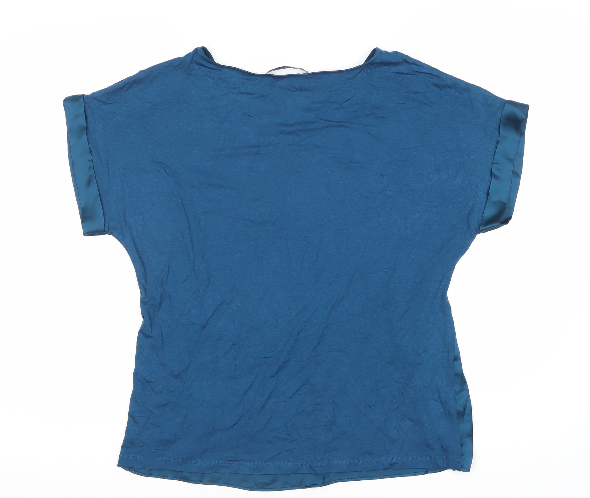 Delve into timeless elegance with this Marks and Spencer women’s top, an ideal pick for any casual outing. Crafted in a captivating blue hue, this top boasts a solid pattern accentuated with a refined boat neck, perfectly complementing its short sleeves. Made from a sturdy blend of polyester and elastane, it promises longevity and a reliable fit that retains its shape wear after wear. Expertly designed for the modern woman, this piece exudes simplicity yet offers a chic silhouette, making it a versatile addition to any wardrobe.Tailored for comfort and style, the top reflects Marks and Spencer's commitment to quality. The fabric allows for easy maintenance, being machine washable, ensuring convenience without sacrificing care. While maintaining a classic appearance, the pullover design keeps it practical and effortlessly stylish, perfect for transitional seasons and layered looks.This size 12 top is crafted for a regular fit that adapts seamlessly, offering a graceful drape over your frame. Whether paired with casual jeans for a relaxed outing or a skirt for a slightly elevated look, this piece is all about understated elegance and everyday ease. It's in excellent condition, showcasing minimal signs of wear, sure to be a go-to staple in your collection. Priced reasonably, it ensures you're investing in a practical yet fashionable garment that speaks volumes of your style, blending effortlessly with a variety of accessories for a personalized touch.Elevate your casual wardrobe essentials with this sophisticated, versatile blue top designed to bring a pop of colour to your attire, injecting both modernity and tradition into your everyday style effortlessly.