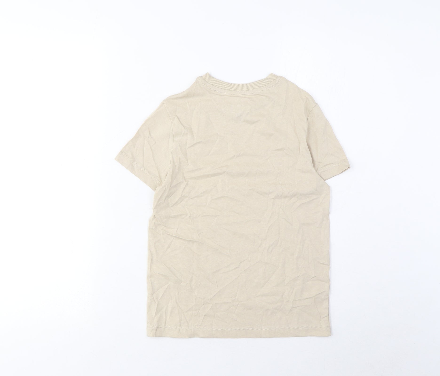 Boys Beige Cotton Basic T-Shirt Size 7-8 Years Crew Neck Pullover