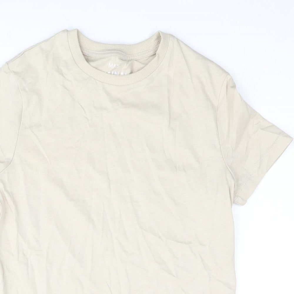 Boys Beige Cotton Basic T-Shirt Size 8-9 Years Crew Neck Pullover