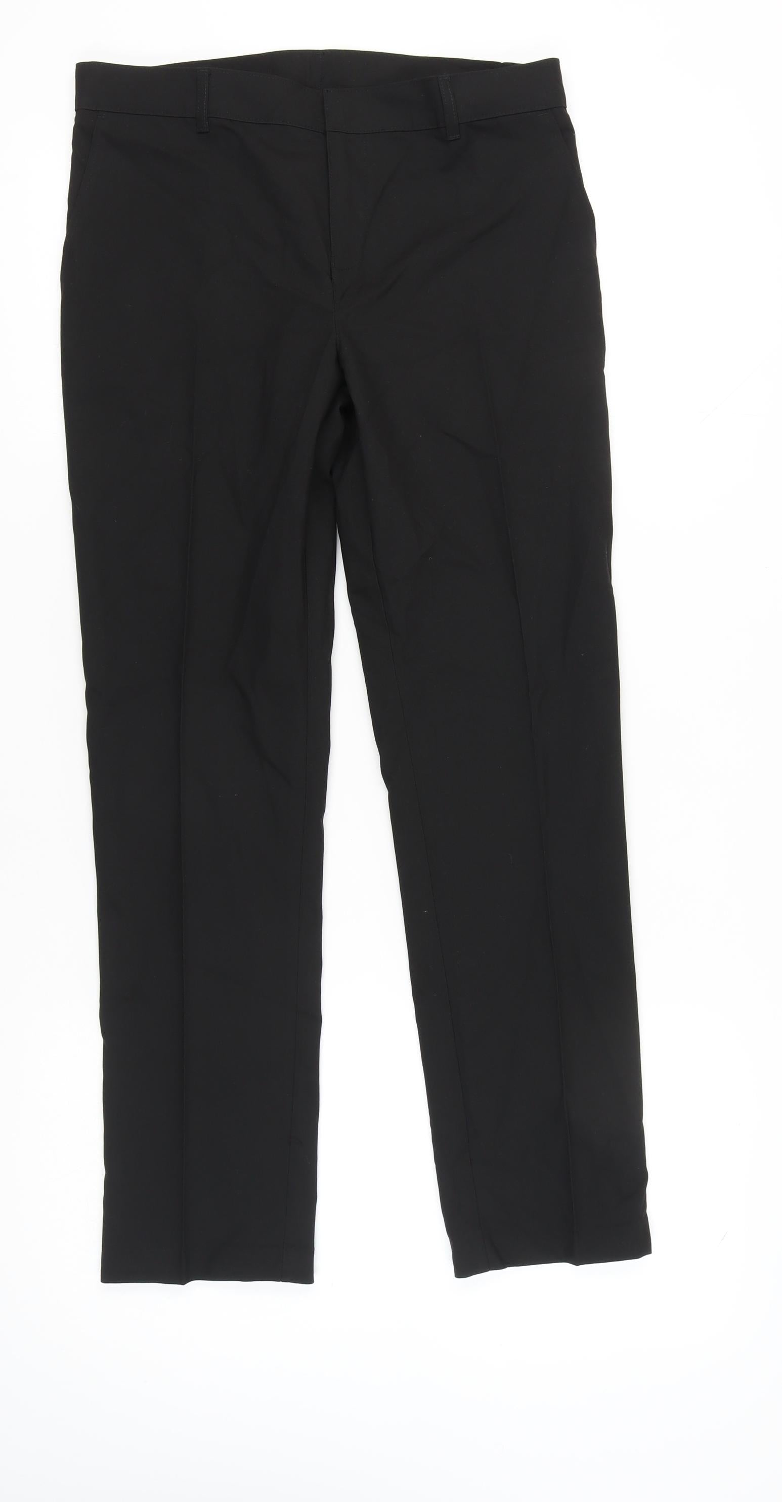 These elegant Marks and Spencer boys' dress trousers are perfect for formal occasions, ensuring your young man looks sharp and sophisticated. Crafted in a classic black colour, these trousers are versatile enough to pair beautifully with a tailored shirt or formal blazer. Made from a comfortable blend of 65% polyester and 35% viscose, they offer durability and comfort throughout the day, while maintaining a polished appearance. Designed for boys aged 15 years, they feature a regular fit that provides both style and ease of movement. These trousers come equipped with an easy care, machine washable fabric, making them practical for busy lifestyles. From weddings to formal dinners, these trousers are perfect for making a distinguished impression. Don't miss out on this opportunity to add a staple piece to your child's wardrobe.