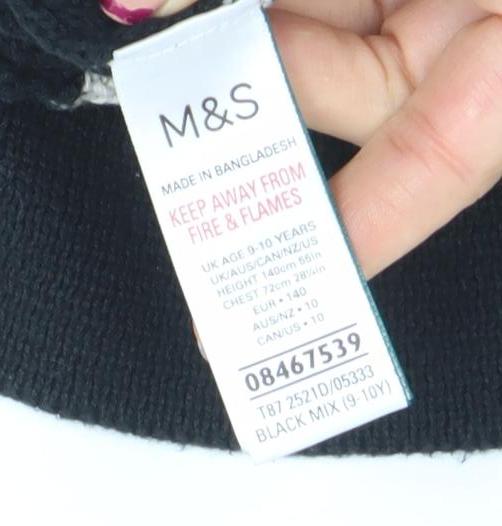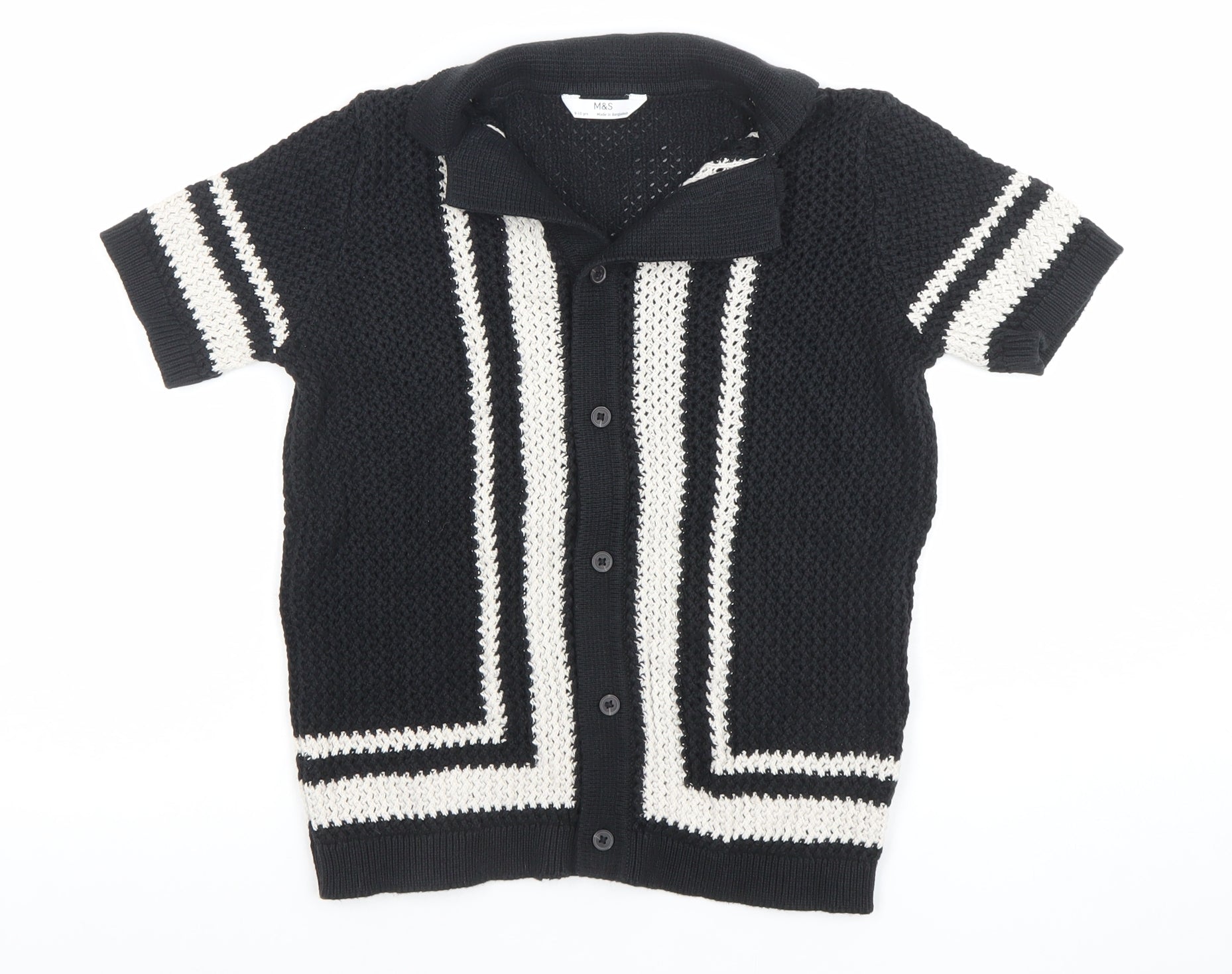 Give your young one timeless style and comfort with this Marks and Spencer Boys Black Mix Knitted Button-Up Shirt in size 9–10 years. Crafted from a soft, breathable cotton and acrylic blend, this lightweight knit shirt ensures a cosy yet airy feel that’s ideal for spring, summer, and early autumn wear. The classic black base with contrasting white stripes offers a stylish, versatile look suitable for family outings, casual occasions, or smart everyday wear. Featuring a collared neckline and front button fastening, it combines practicality with a refined edge, making it an easy choice for layering over a T-shirt or wearing on its own. The short sleeves provide an unrestrictive fit perfect for active days, while the textured knit fabric adds a premium appearance. Known for quality craftsmanship, Marks and Spencer deliver durability and comfort that lasts wash after wash. This shirt remains in excellent pre-owned condition, showing no visible wear, stains or damage, though it does not include the original tags. With its timeless pattern, easy-care design and comfortable regular fit, this versatile piece pairs effortlessly with jeans, chinos, or tailored shorts. Whether dressing up for a family event or enjoying a weekend day out, this shirt offers casual elegance for any occasion. A great staple for the modern young wardrobe, this piece reflects both M&S quality and dependable British style, ensuring it continues to look great through many wears to come.