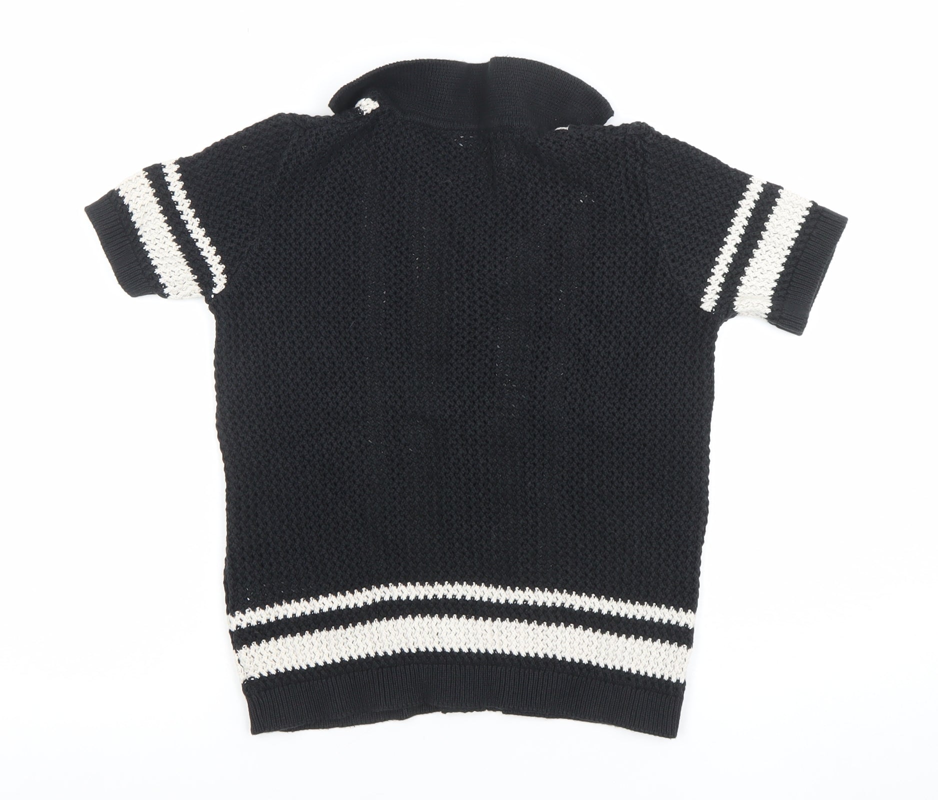 Boys Black Mix Button-Up Short Sleeve Knitted Shirt Age 9-10