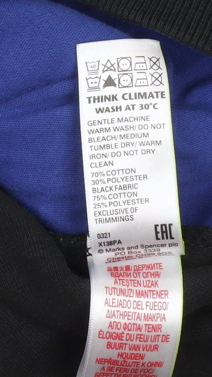 This stylish Marks and Spencer boys’ pullover hoodie is the perfect blend of comfort, warmth, and classic design for everyday wear. Designed for boys aged 12-13 years, this hoodie features a striking colourblock style with a soft black upper section and a textured dark grey lower panel, giving it a modern and versatile look ideal for casual and schoolwear. Crafted from a high-quality cotton blend, the main body consists of 70% cotton and 30% polyester, ensuring a breathable yet durable feel that holds its shape wash after wash. The black fabric portions feature an enhanced composition of 75% cotton and 25% polyester for added softness and flexibility. This long sleeve hoodie is designed with ribbed cuffs and hem to keep in warmth, while the lined hood offers extra coverage against the chill. The front pockets add a practical touch, giving space for small essentials like keys or phones. With its regular fit and crew neckline, it provides a relaxed wear experience suitable for layering over t-shirts or under jackets during the cooler seasons. Easy to care for, this hoodie is machine washable and ideal for everyday use. Perfect for autumn, winter, and spring, it offers versatile styling for casual outings, school days, or lounging at home. In excellent pre-owned condition with no stains, tears, or visible wear, this hoodie represents great value for a quality Marks and Spencer piece. A reliable wardrobe staple that blends warmth, comfort, and minimalistic style, it’s perfect for the active boy who values both practicality and fashion. Add this versatile hoodie to your wardrobe today for a dependable all-seasons piece that will keep you looking smart and feeling cosy wherever you go.
