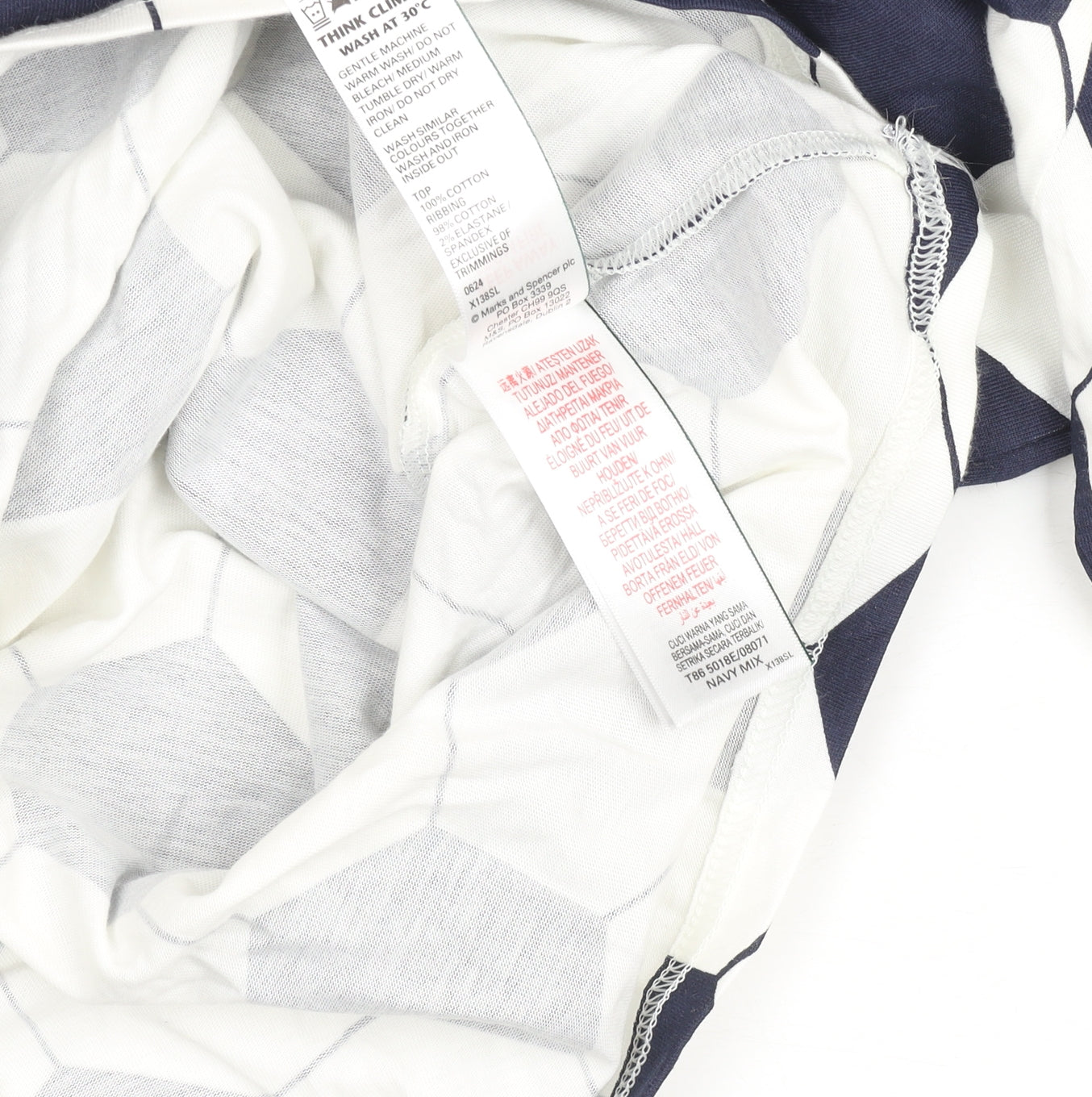 Add a touch of sporty fun to your child's wardrobe with this stylish long sleeve T-shirt from Marks and Spencer. Crafted from 100% soft cotton, this top ensures maximum comfort and breathability, perfect for everyday wear or light activity. The bold geometric black and white hexagonal pattern gives it a modern yet playful appeal — a great choice for active boys who love football or casual streetwear style.With its regular fit and crew neckline, the T-shirt offers a relaxed and easy shape that looks great whether worn alone or layered under a hoodie or jacket. The jersey fabric makes it flexible and smooth against the skin, while its long sleeves provide added warmth during the cooler seasons. It’s designed to be durable and easy to maintain, being machine washable at 30°C, so it’s as practical as it is fashionable.This Marks and Spencer top combines quality craftsmanship with appealing design, known for comfort and everyday reliability. The lightweight, breathable cotton fabric ensures all-day comfort, making it an ideal choice for school days, after-school clubs, or simply lounging at home. The versatile black and white colour scheme also makes it easy to pair with jeans, joggers, or shorts.In excellent pre-owned condition, showing minimal signs of wear, this item offers great value and style. A must-have for boys who appreciate sporty, clean, and classic styles without compromising comfort.Perfect for any season, this long sleeve cotton T-shirt from Marks and Spencer is an ideal addition to your child’s wardrobe — dependable, stylish, and crafted to last.