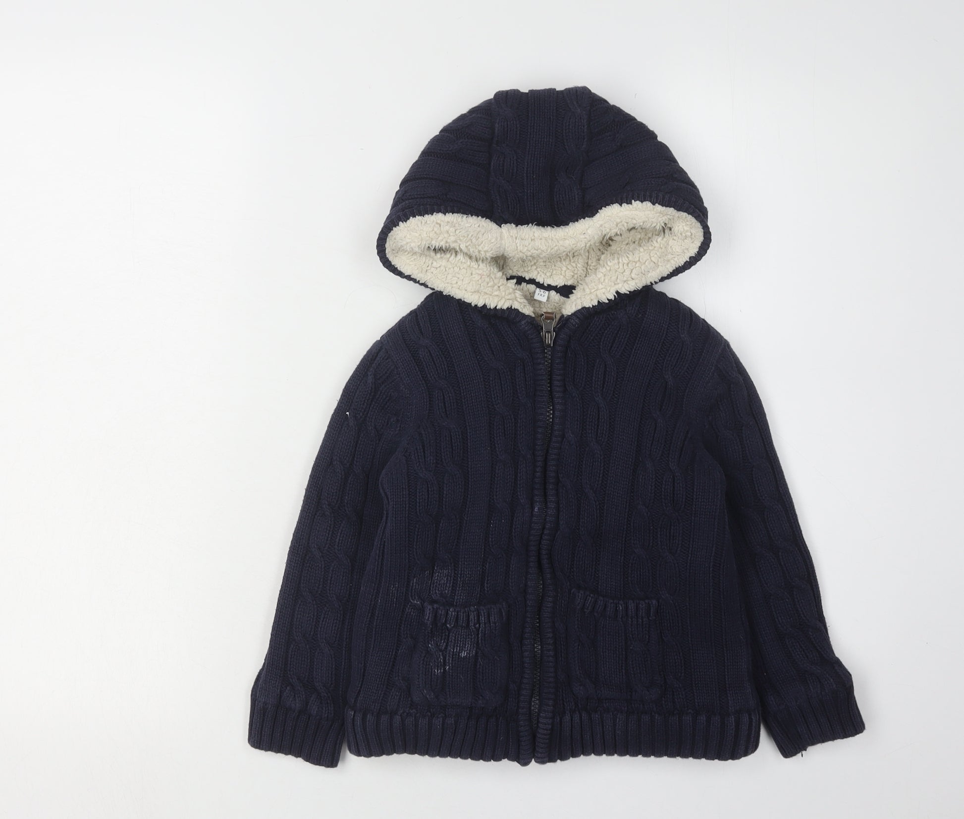 Boys Blue Cable-Knit Hooded Jumper 5-6 Years