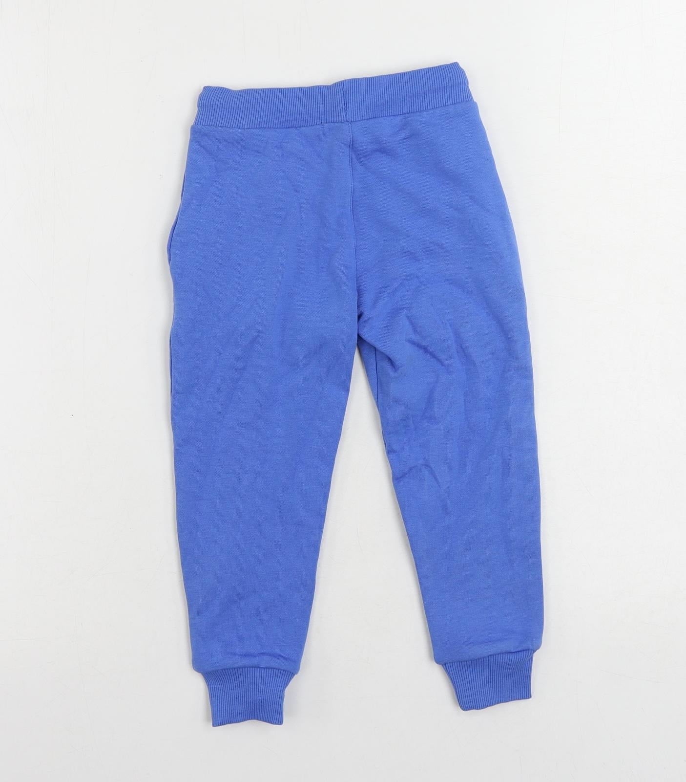 Boys Blue Cotton Jogger Trousers Size 3-4 Years Regular Drawstring - Pockets