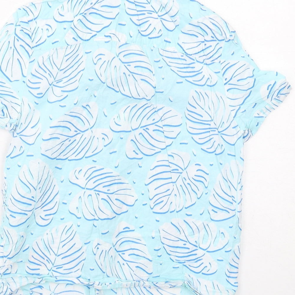 Boys Blue Geometric Cotton Basic Button-Up Size 8-9 Years Collared Button - Leaf Print