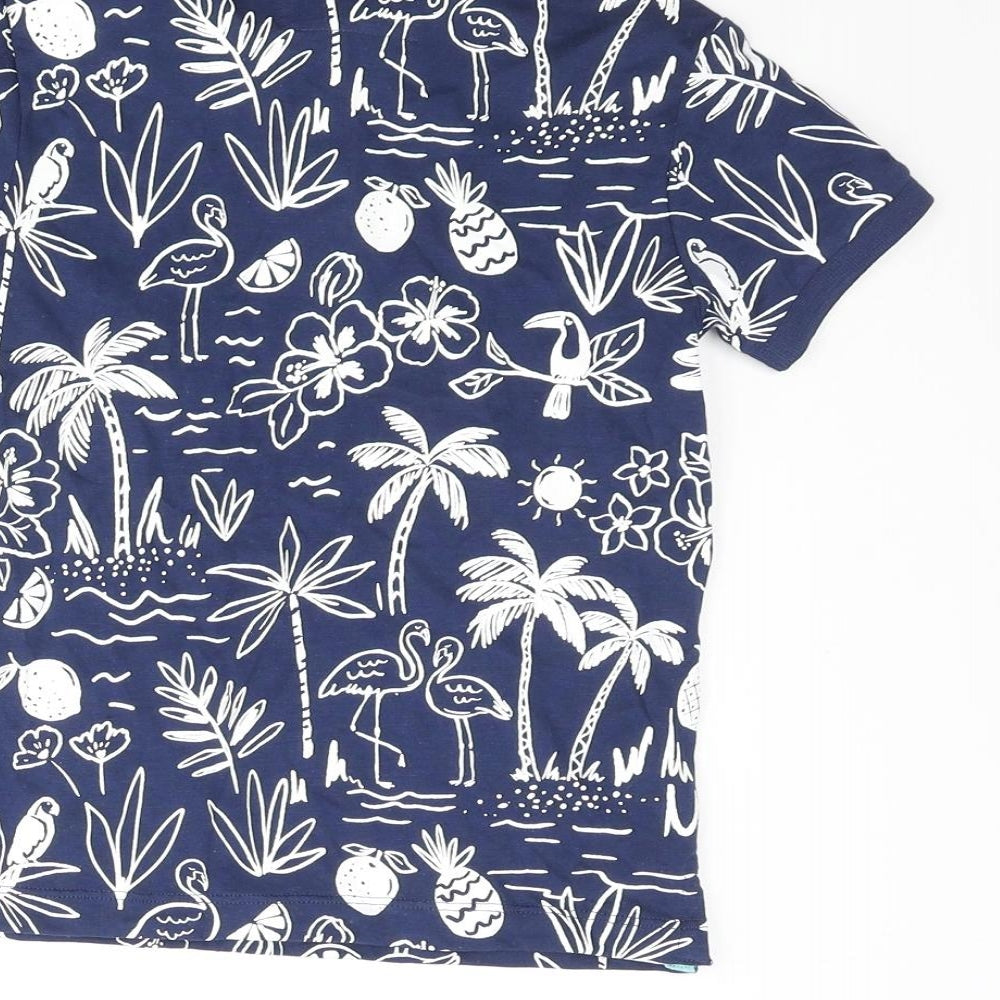 Boys Blue Geometric Cotton Basic Polo Size 4-5 Years Collared Button - Flamingo Fruit Palm Tree