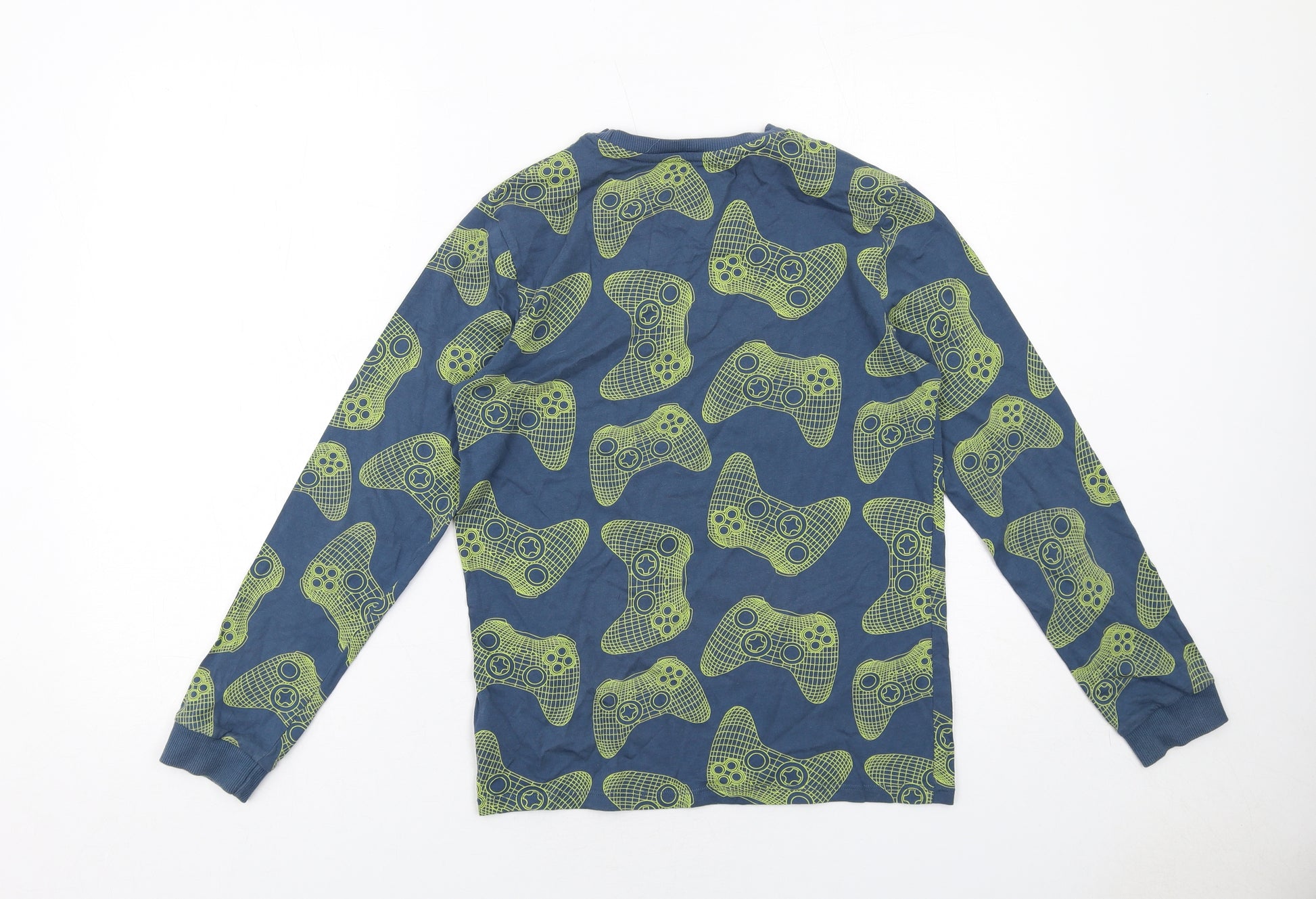 Boys Blue Geometric Cotton Basic T-Shirt Size 12-13 Years Round Neck Pullover - Remote Control