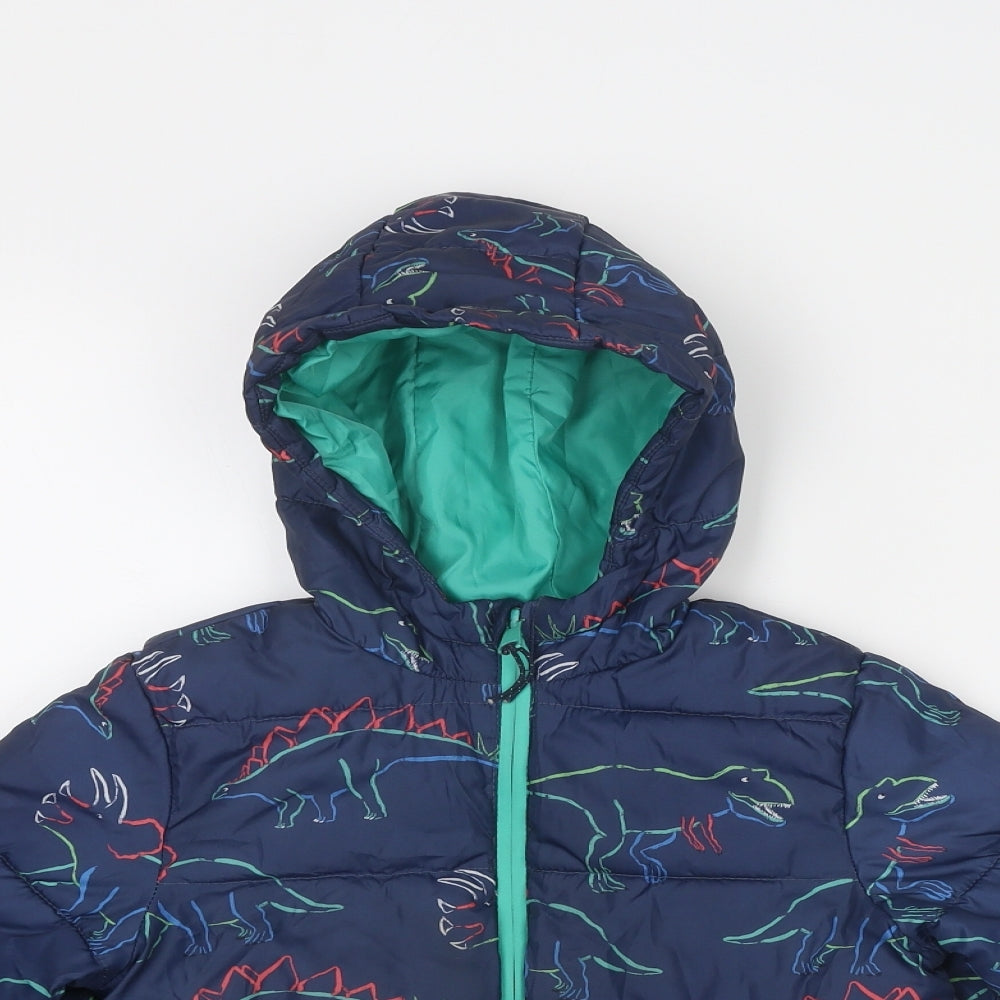 Boys Blue Geometric Puffer Jacket Jacket Size 5-6 Years Zip - Dinosaur Print