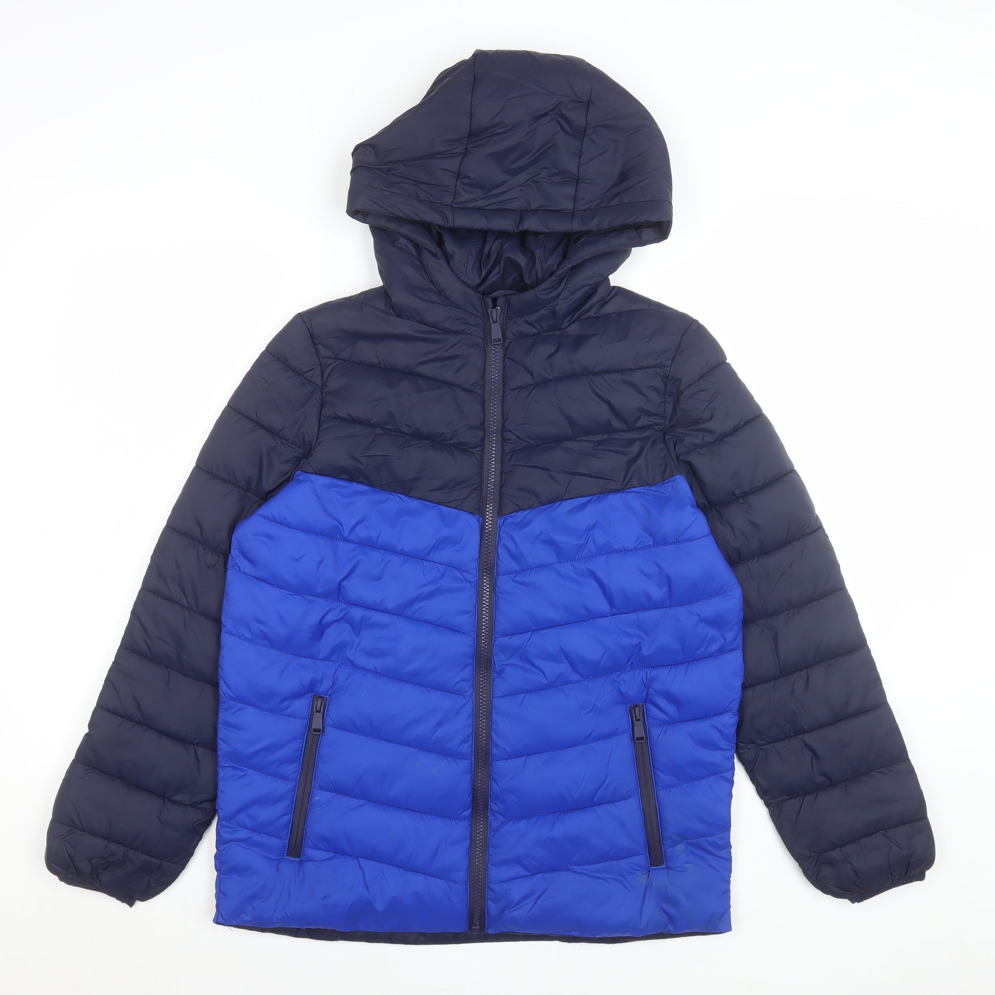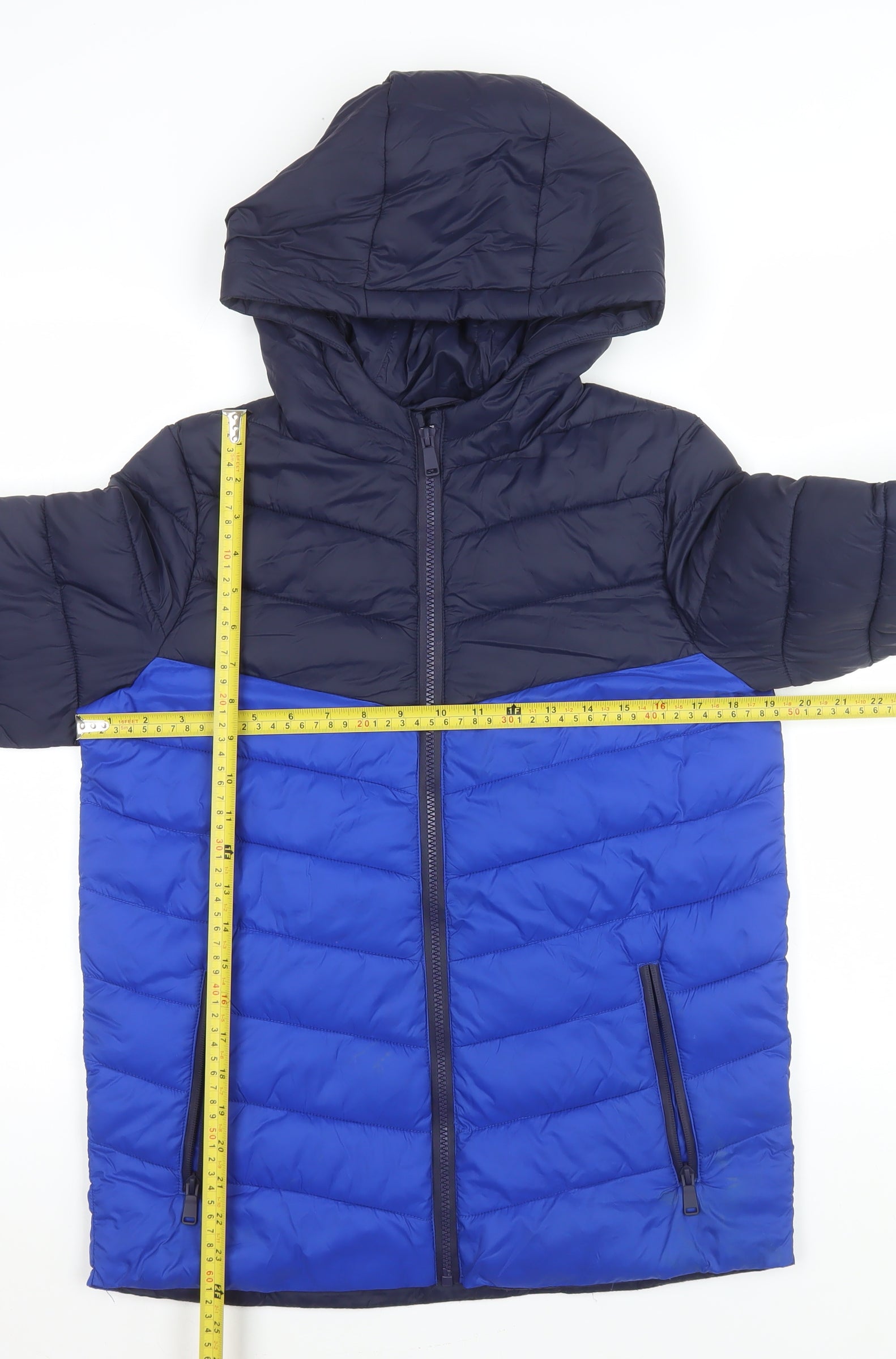 Boys Blue Hooded Puffer Jacket 12-13 Years Water Resistant