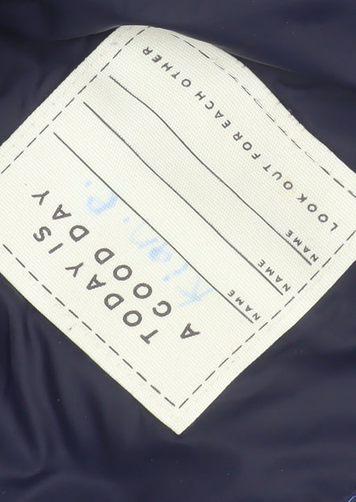 Keep your youngster warm and comfortable with this Marks and Spencer boys' hooded puffer jacket in a striking two-tone blue and navy design. Perfect for the colder months, it combines both practicality and style. The jacket’s stormwear technology ensures it remains water resistant, ideal for light rain and chilly, damp days. Crafted from 100% polyester, it offers a lightweight yet durable construction that’s soft to the touch and comfortable for everyday wear. The full zip front provides easy fastening, while the zipped pockets are perfect for safely storing small essentials like gloves or keys. The cosy hood and lightly padded build deliver extra warmth without adding unnecessary bulk, perfect for layering over school uniforms or casual outfits. Designed with active boys in mind, the jacket’s regular fit allows easy movement whether playing outside, walking to school, or enjoying weekend adventures. Easy to maintain, it’s machine washable, making it a hassle-free choice for busy parents. This mid-length jacket offers a sleek modern shape and blocks out the breeze without restricting movement. With its clean lines, colourblock pattern, and durable polyester exterior, this Marks and Spencer piece is both fashionable and functional. In very good condition, it shows only light signs of previous wear and retains its quality structure and appeal. The inner name tag has a previous name written on it, but otherwise, the garment presents beautifully with no stains or tears. A dependable choice for active boys, this jacket ensures warmth, style, and practicality for everyday use in cooler seasons.