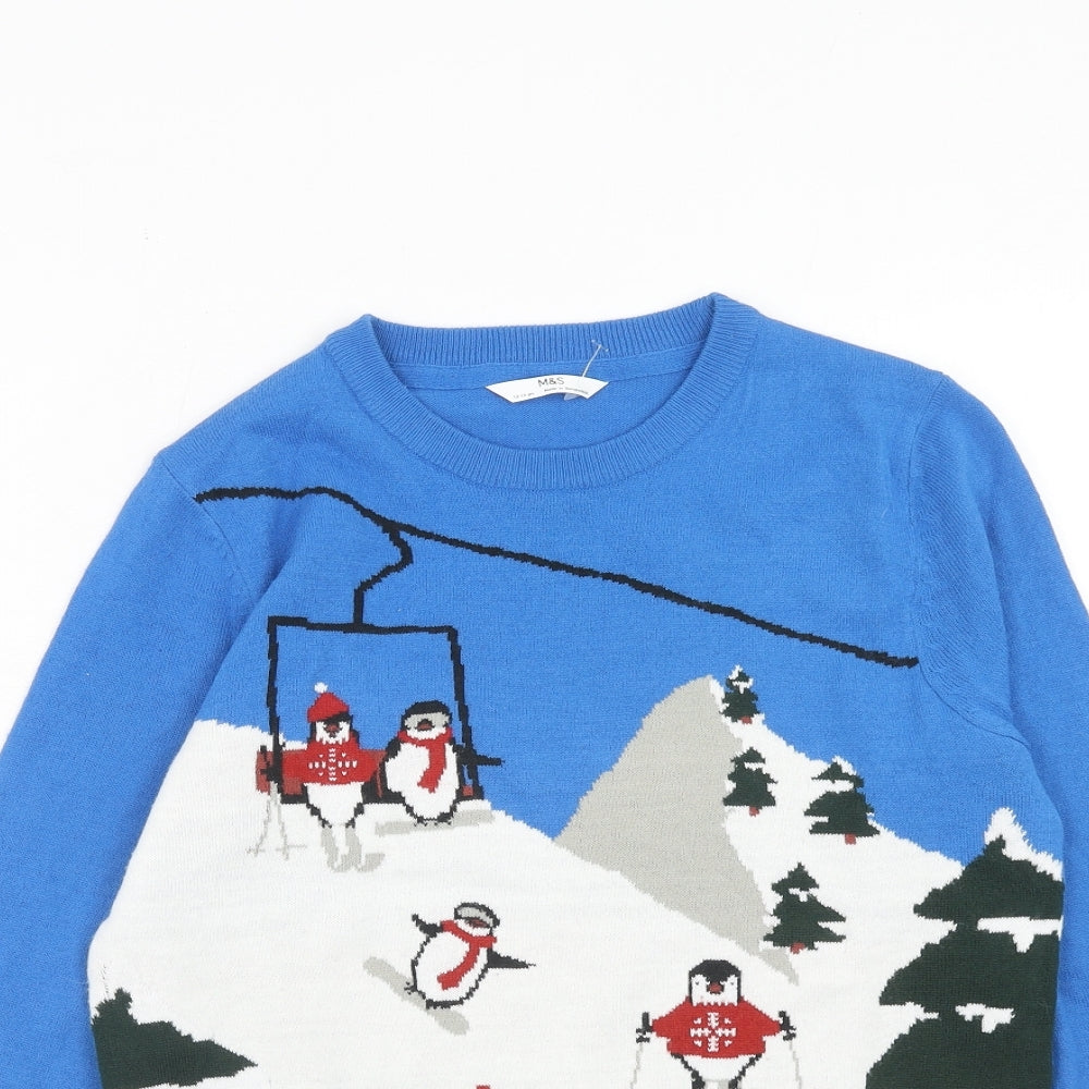 Boys Blue Round Neck Acrylic Pullover Jumper Size 12-13 Years Pullover - Penguin Skiing