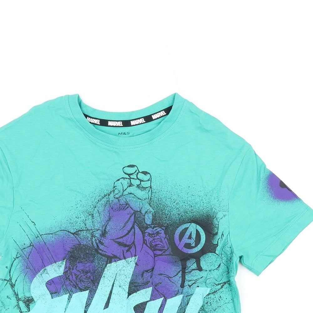 Boys Green Cotton Basic T-Shirt Size 7-8 Years Round Neck Pullover - The Hulk, Marvel