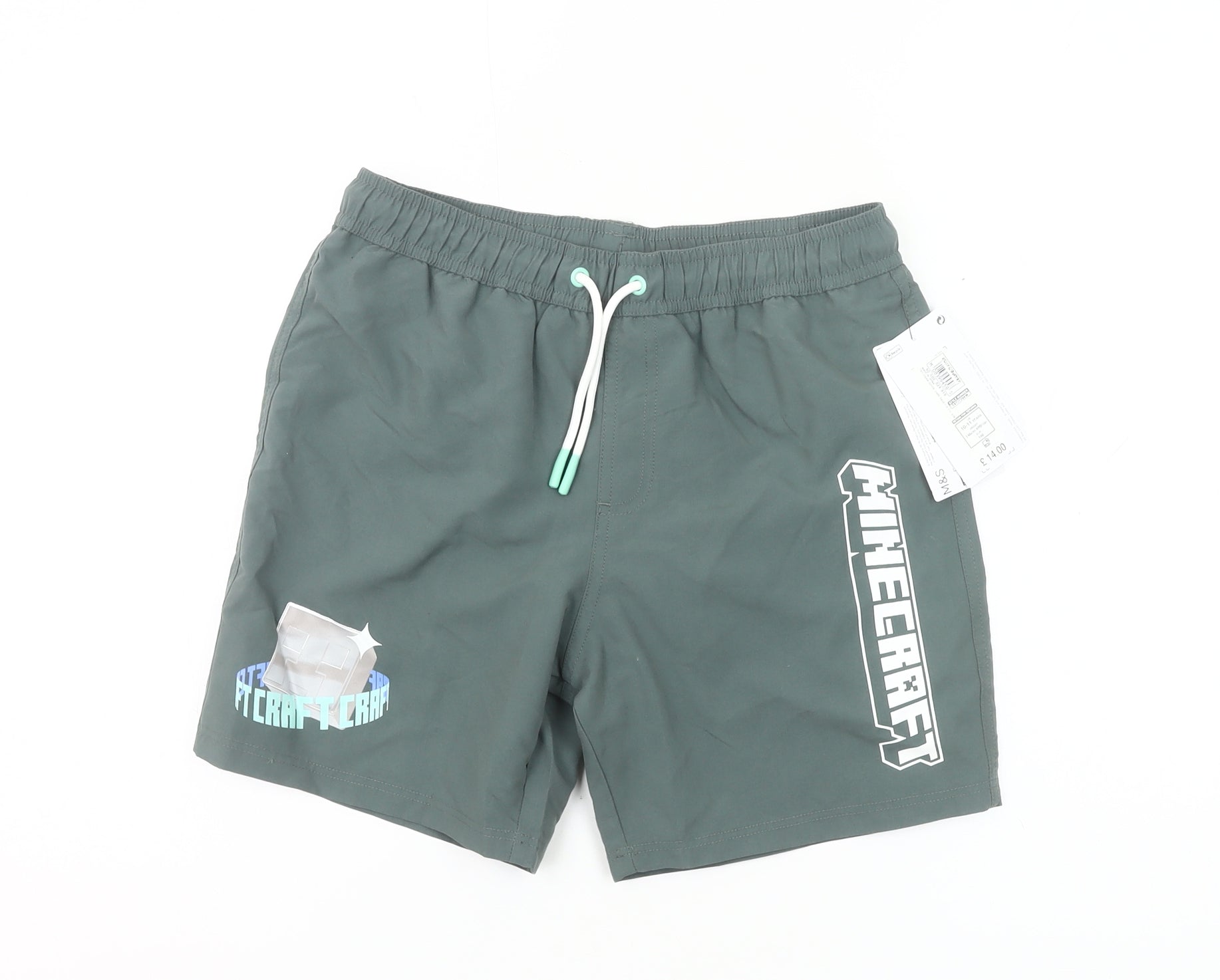 Boys Green Minecraft Swim Shorts 10-11Y Polyester Quick Dry