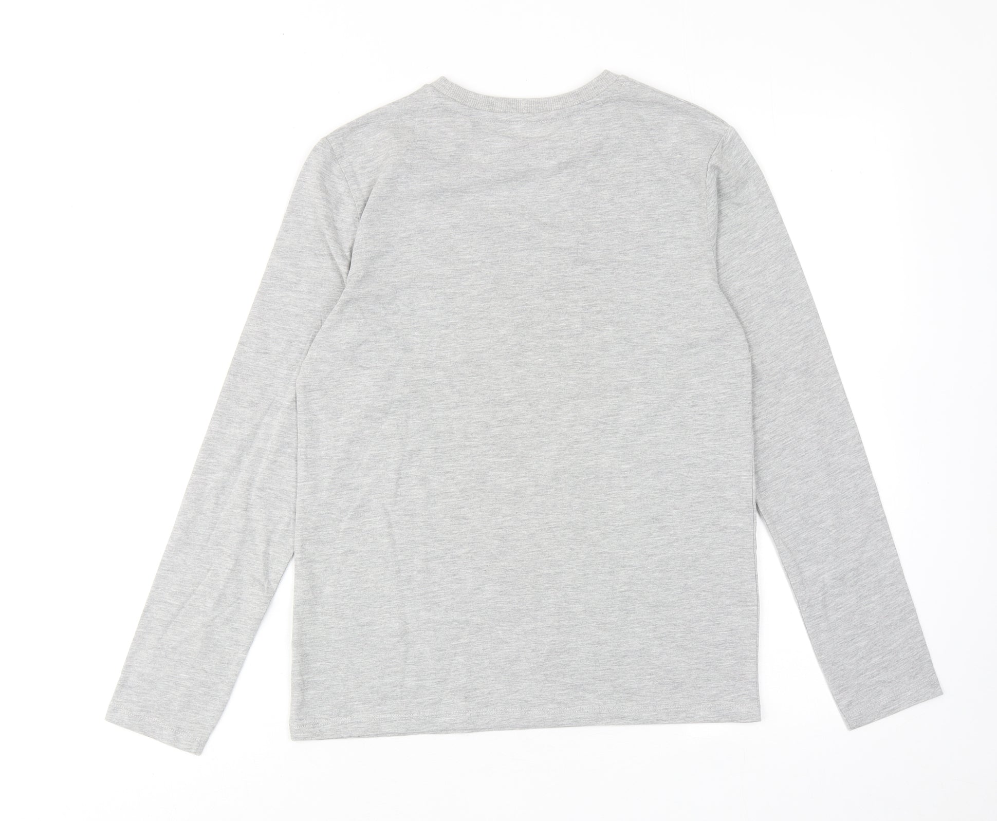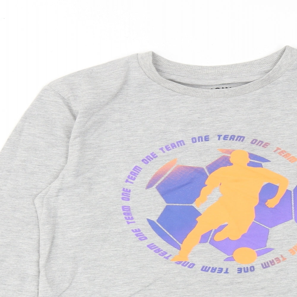 Boys Grey Cotton Basic T-Shirt Size 13-14 Years Round Neck Pullover - One Team