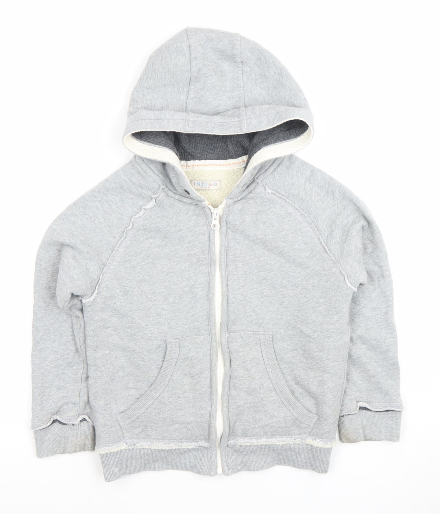 Boys Grey Full Zip Hoodie Size 5-6 Years Cotton Blend
