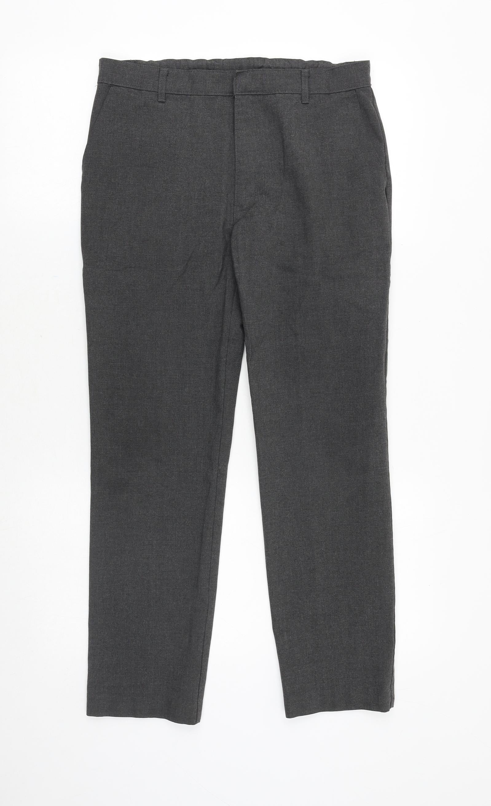 Boys Grey Polyester Chino Trousers Size 12-13 Years Regular Zip
