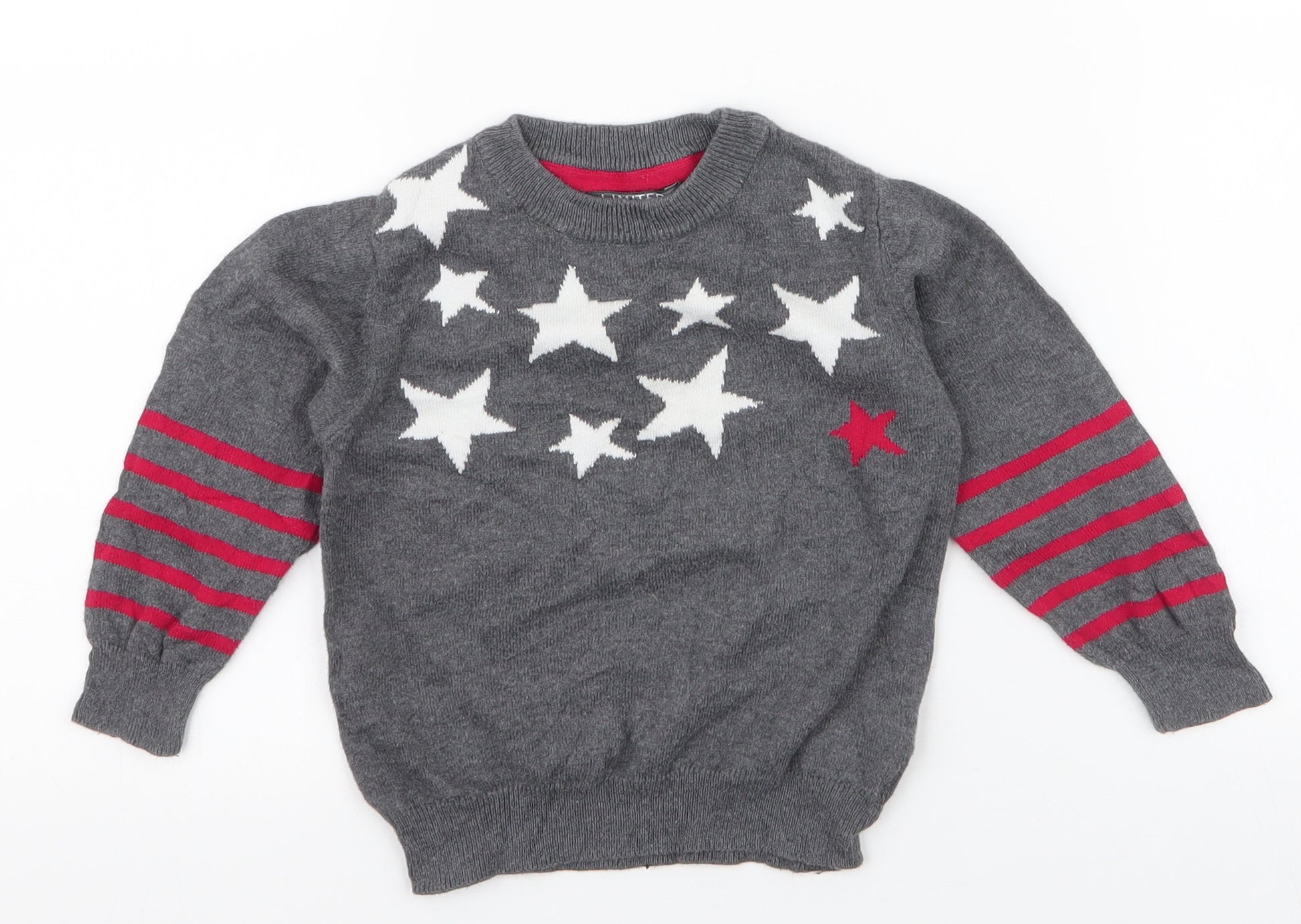 Boys Grey Striped 100% Cotton Pullover Jumper Size 18-24 Months Pullover - Stars , Elbow pads