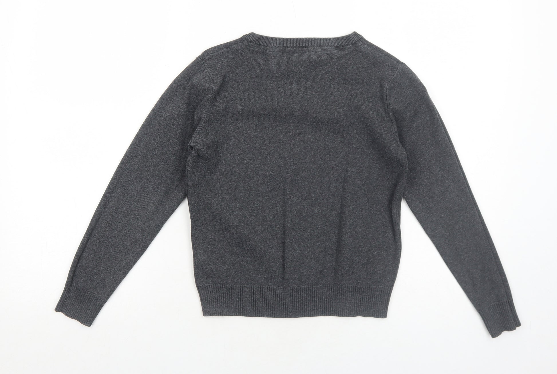 Boys Grey V-Neck Cotton Pullover Jumper Size 9-10 Years Pullover