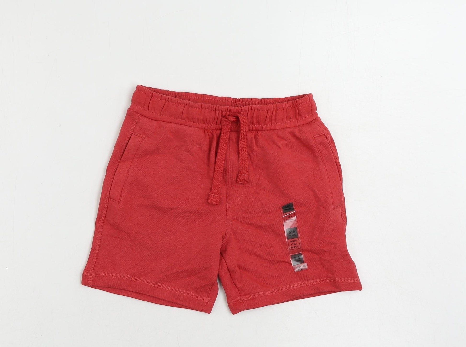 Boys Red Cotton Sweat Shorts Size 5-6 Years Regular Drawstring - Pockets