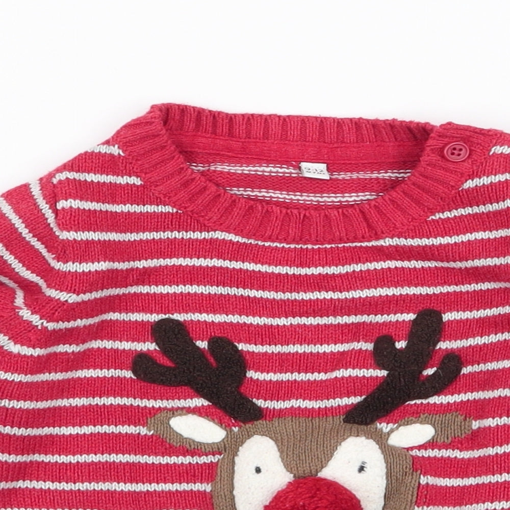 Boys Red Striped 100% Cotton Pullover Jumper Size 9-12 Months Button - reindeer