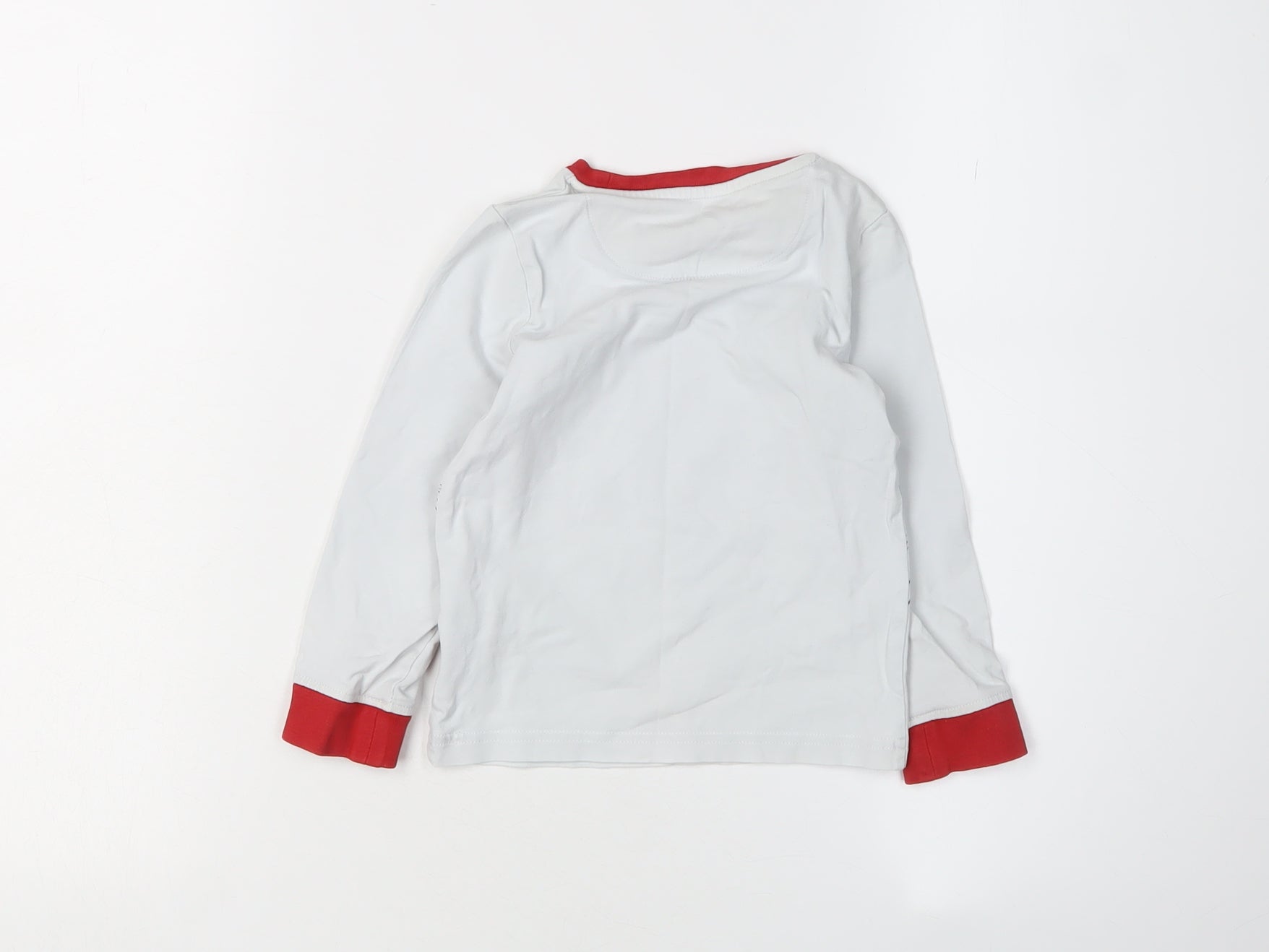 Elevate your child's wardrobe with this charming Marks and Spencer Paddington T-Shirt, perfect for young boys aged 2-3 years. This delightful tee features a striking graphic print of Paddington Bear, instantly adding a touch of whimsical charm to any casual ensemble. Crafted from a soft and comfortable jersey fabric, the T-shirt combines 96% Cotton and 4% Elastane, ensuring both breathability and a slight stretch for active little explorers. The classic crew neck and long sleeves provide a comfortable fit suitable for all seasons. The clean, white colour with contrasting red accents on the sleeves and neckline enhances its playful appeal. Designed with practicality in mind, this easy-care cotton tee is machine washable, making it perfect for everyday wear. Whether it's a day at the park or a fun playdate, this Paddington T-shirt brings both style and comfort, ensuring your child will look adorable. Don't miss out on this delightful piece that blends beloved storybook charm with the trusted quality of Marks and Spencer.