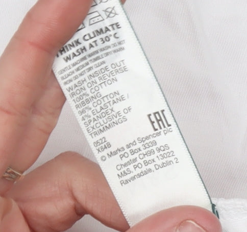 Refresh your child's casual collection with this stylish Marks and Spencer Boys White and Red Long Sleeve Ringer T-Shirt, designed to deliver comfort, versatility, and a sporty edge. Made from soft and breathable cotton with a touch of elastane, this top offers a comfortable fit with just the right amount of stretch, ensuring your youngster can move freely throughout the day. The contrast burgundy sleeves feature two striking white stripes for a sporty varsity-inspired look, while the navy neckline provides a classic ringer finish that elevates its everyday charm.Perfect for layering or wearing solo, this long sleeve T-shirt sits comfortably against the body, with a lightweight jersey fabric that makes it a great all-seasons piece. The crew neckline and pullover design make dressing quick and easy, while its durable, machine-washable construction means it will hold its shape wash after wash.Ideal for school days, relaxed weekends, or casual family outings, this T-shirt is designed for boys aged 10-11 years, with a chest size of 75 cm for a comfortable regular fit. Whether teamed with jeans, joggers, or shorts, it’s a versatile essential that combines the quality of Marks and Spencer craftsmanship with a classic modern design. In excellent pre-owned condition, with no visible marks, rips, or wear, this garment is ready for plenty more adventures.Give your young one an effortlessly cool look with this all-seasons Marks and Spencer long sleeve T-shirt—an easy-to-style, comfortable option that works for every occasion from a weekend playdate to a relaxed family day out.