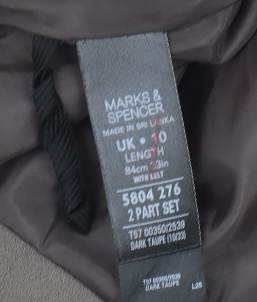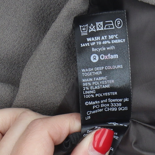 Elevate your wardrobe with this elegant Marks and Spencer midi skirt, perfect for a sophisticated look. Whether heading to a business meeting or a casual brunch, this brown skirt combines versatility with style. Crafted from a smooth blend of polyester and elastane, the skirt offers not only comfort but a chic silhouette. The set type design adds a unique touch to your collection, ensuring you stand out in the crowd. Designed for the modern woman, its no-pattern look enables easy pairing with a variety of tops. This regular-sized skirt is custom-made for women who appreciate quality and style in one package. The excellent condition ensures longevity and continued enjoyment, making this an essential addition to your fashion line-up.