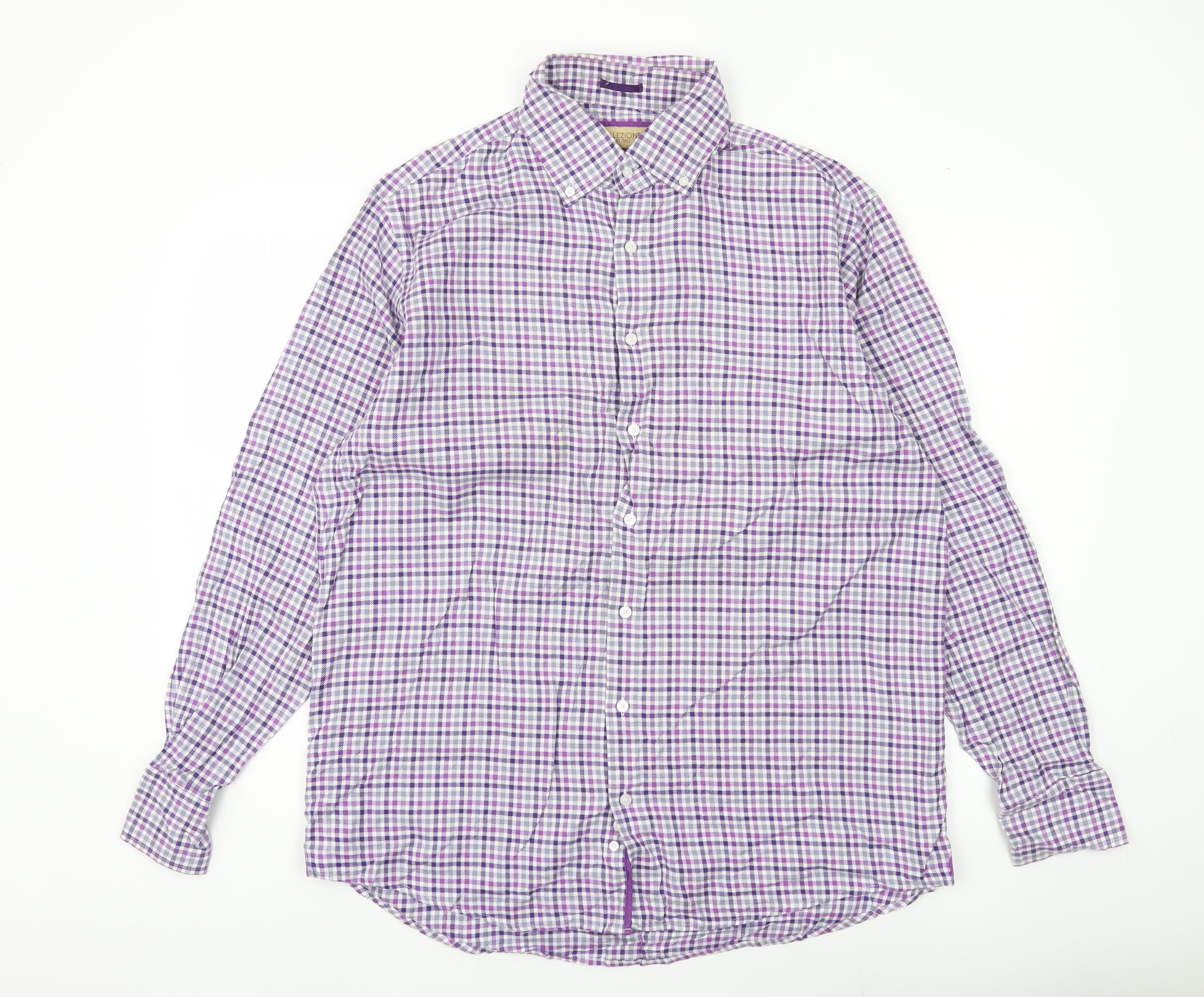 Collezione Men's Purple Check Cotton Dress Shirt L 42-43