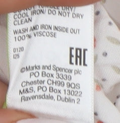 This delightful Marks and Spencer women's blouse is perfect for those who appreciate classic style and effortless charm. The blouse, in an elegant white hue, features a striking floral pattern that adds a touch of nature-inspired beauty. Tailored for a regular fit, it is designed to enhance your silhouette while ensuring comfort throughout the day. Made from 100% viscose, the blouse promises a soft and smooth texture against your skin. Its Henley neckline adds a sophisticated touch, complemented by a practical button closure that allows for easy wear. The long sleeves offer a graceful look, ideal for the warmer months of spring and summer. This blouse is a versatile choice for casual occasions, whether you're enjoying a leisurely day out or meeting friends for coffee. Embrace the timeless charm of floral patterns with this chic piece, and effortlessly pair it with your favourite jeans or trousers. Don't miss the opportunity to own this excellent Marks and Spencer creation that combines style and comfort effortlessly.