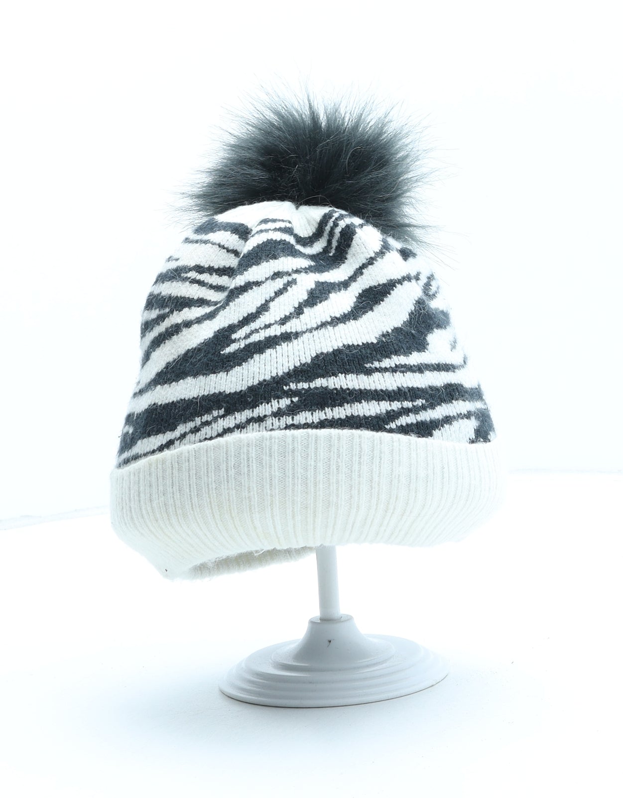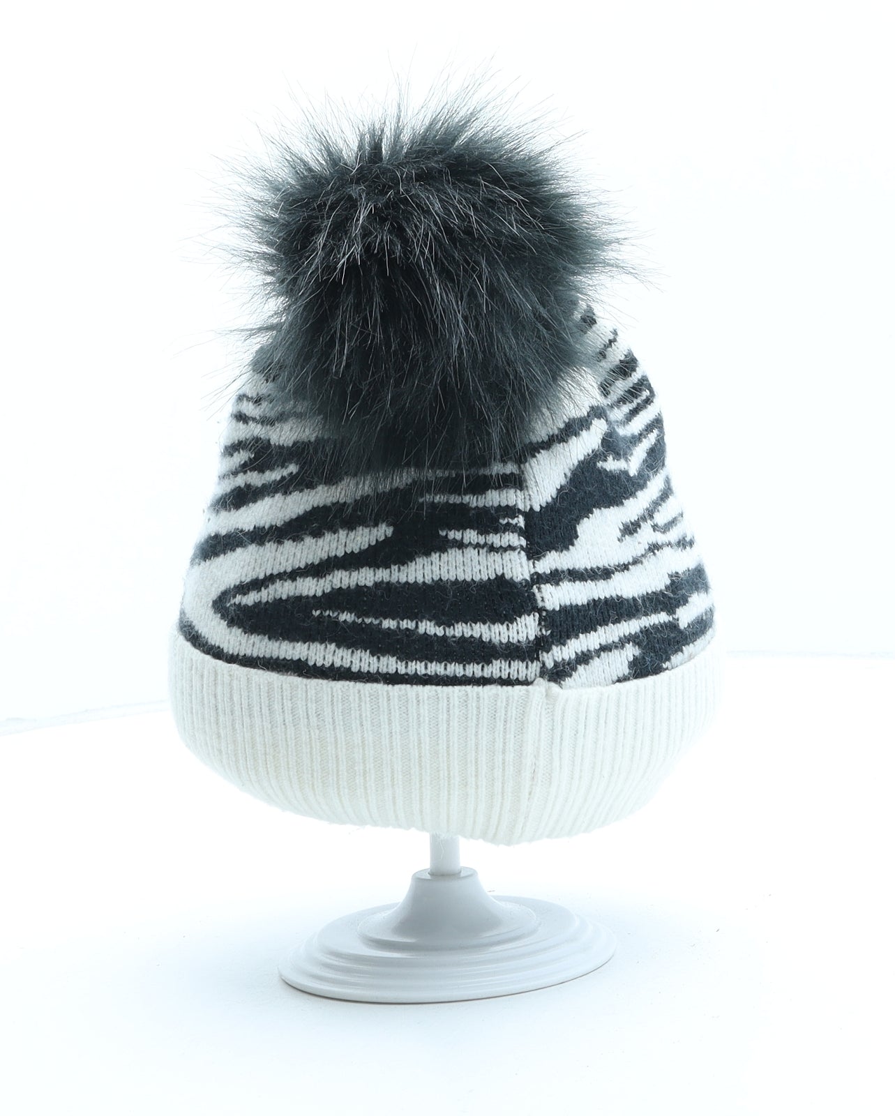 Girls Black Animal Print Viscose Bobble Hat One Size - Zebra Pattern Size 10-13 Years