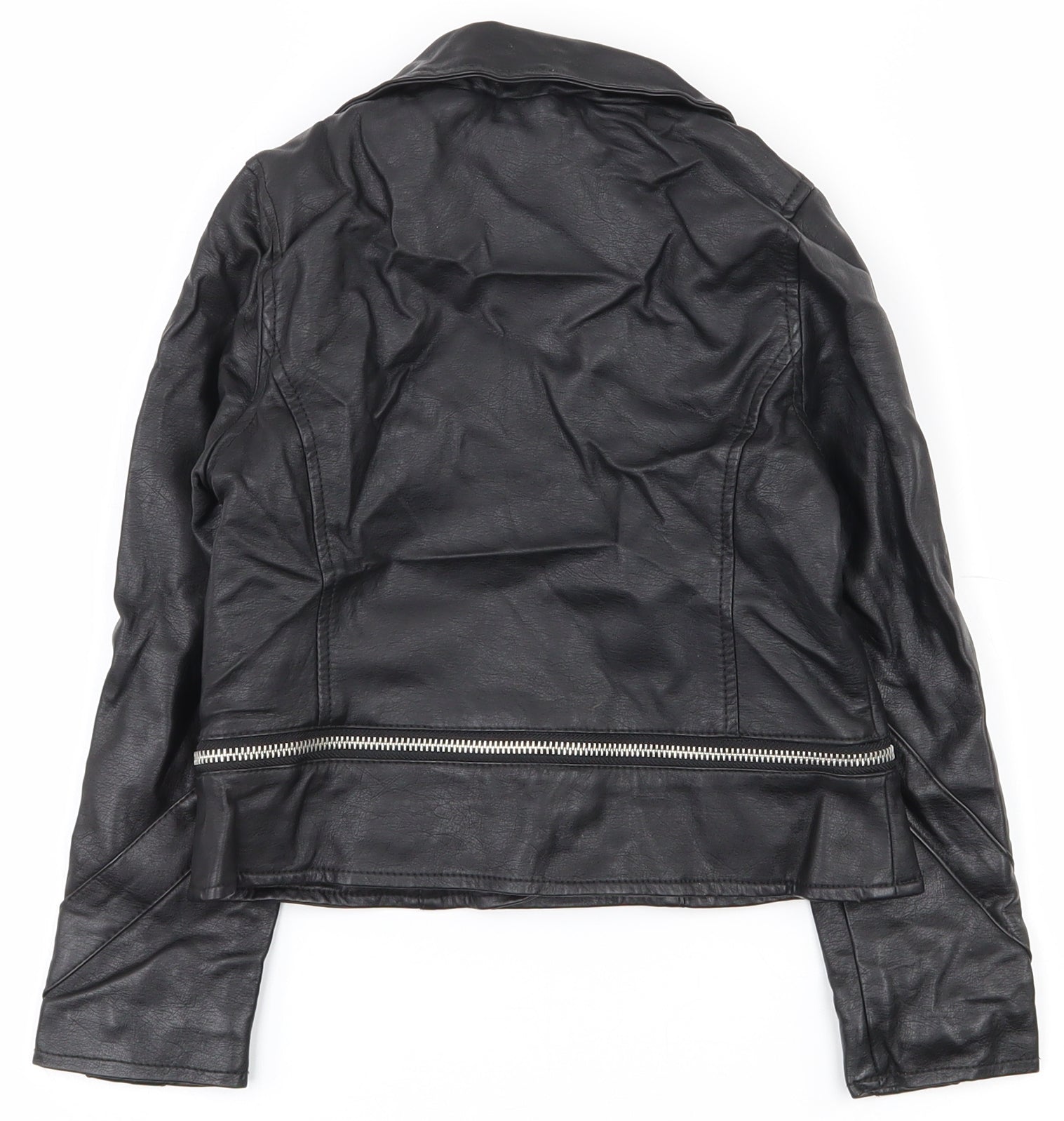 Girls Black Jacket Size 5-6 Years Zip - Leather jacket