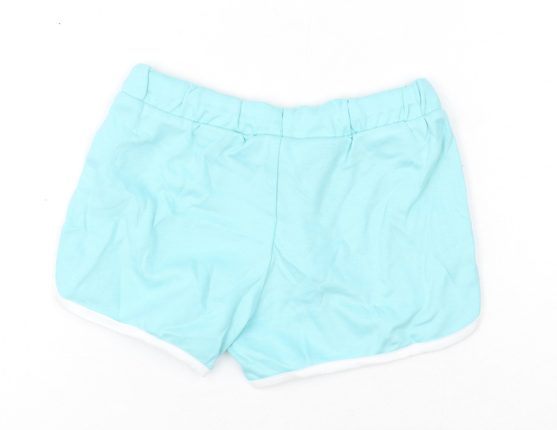 Marks and Spencer Girls Blue Cotton Sweat Shorts Size 6-7 Years Regular Drawstring - Cool, Ice-lolly