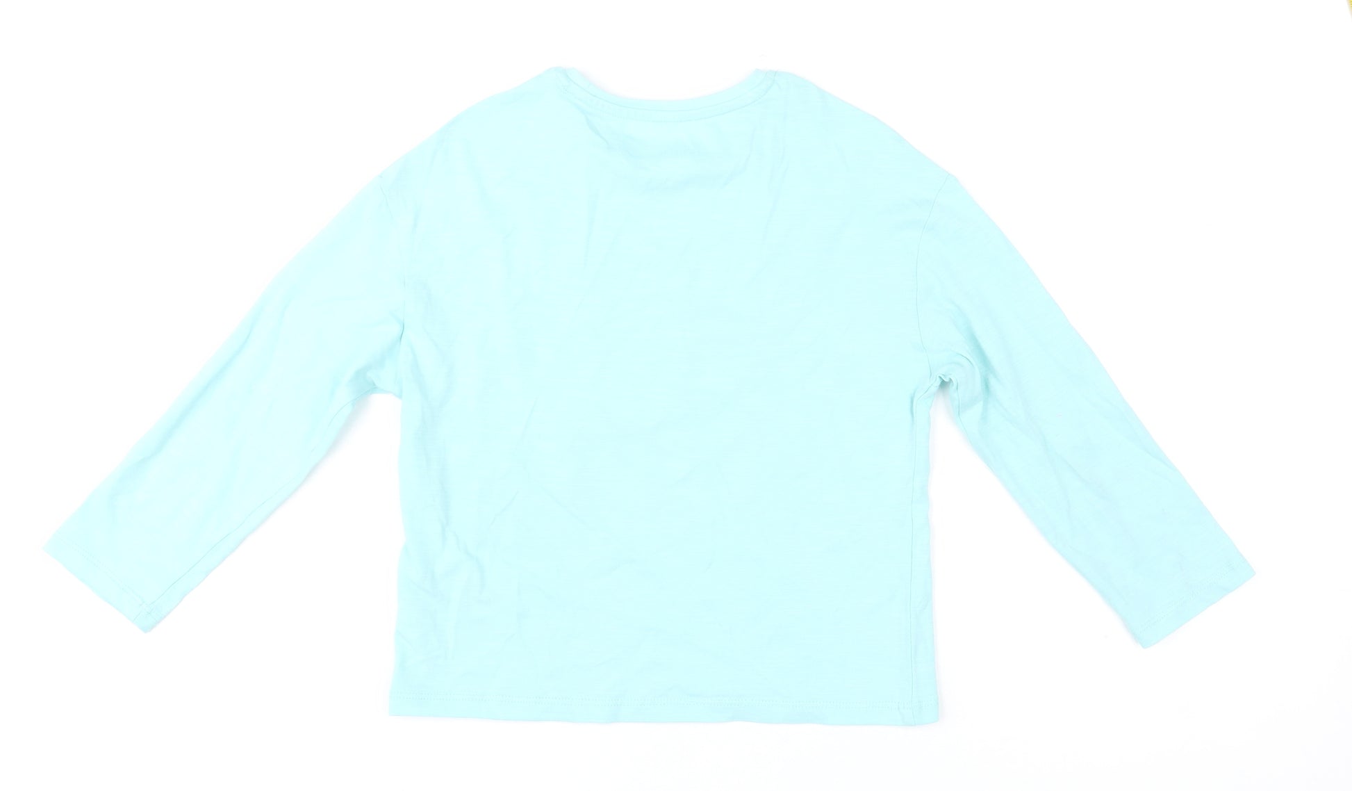 Delight your little one with this charming Marks and Spencer Girls' Disney Princess T-Shirt, featuring a lovely depiction of Ariel from The Little Mermaid. Crafted from pure cotton, this lightweight and breathable top ensures all-day comfort while offering a soft and gentle feel against the skin—perfect for everyday wear. The soothing pastel blue shade adds a fresh, ocean-inspired touch, while the long sleeves provide added warmth for cooler spring and autumn days. Designed in a regular fit with a classic crew neckline, this long-sleeve T-shirt combines practicality and playfulness in one stylish package.This top is adorned with a fun graphic print of Ariel and her friend Flounder, adding a whimsical twist that any Disney fan will adore. It’s easy to care for thanks to its machine washable cotton jersey fabric, making it a low-maintenance choice for busy parents. The pullover style and soft finish make dressing quick and comfortable for active children. With its versatile design, it pairs effortlessly with jeans, leggings, or skirts for casual days, playdates, or family outings.The Marks and Spencer name ensures quality, comfort, and durability, so you can trust this T-shirt to maintain its colour and shape wash after wash. Ideal for layering under cardigans during colder months or wearing solo on warmer days, it’s a delightful addition to any little girl’s wardrobe. Though gently worn, this top remains in excellent condition with no significant flaws. A must-have piece for any young fan of Disney Princesses, this Ariel T-shirt is sure to bring a little magic to her everyday adventures.