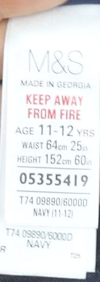 Elevate your young one’s wardrobe with these stylish Marks and Spencer girls' shorts, designed for vibrant spring and summer outings. Created for comfort and flair, this pair is presented in a beautiful blue with a subtle floral pattern that adds a touch of elegance to casual wear. Crafted primarily from cotton blended with polyester and metallic fibres, these shorts offer a soft touch against the skin while ensuring durability and a slight shimmer to catch the eye. Well-suited for casual occasions, they feature a pleated front for an added element of sophistication, making them ideal for both everyday adventures and slightly more dressy affairs.The shorts come in size 11-12 years, making them a versatile addition to your girl’s wardrobe as she navigates different activities. The zip closure ensures a snug fit without compromising style. Although they are in excellent condition, no sales tags are present, making them a superb option for girl's casual outings without the premium tag price.With machine wash care, maintaining their fresh look and vibrant hue is effortless, allowing for easy laundering and less worry about stains from exciting outdoor play. The shorts' thoughtful construction ensures they sit comfortably on the waist while offering plenty of movement freedom for active kids who love to explore. Whether paired with a chic top or a simple tee, these shorts are a must-have for the wardrobe of any fashion-forward youngster.