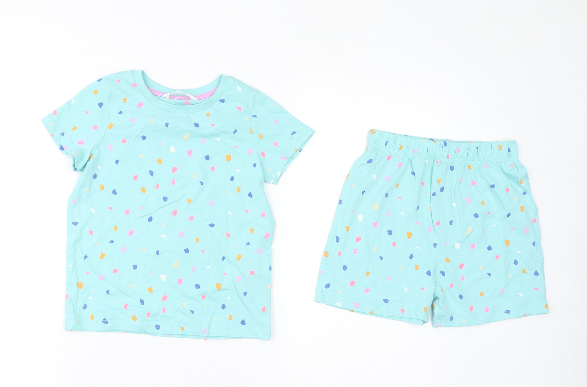 Girls Blue Geometric Cotton Top Pyjama Set Size 2-3 Years Pullover - Waist 19in, Inside Leg 3in