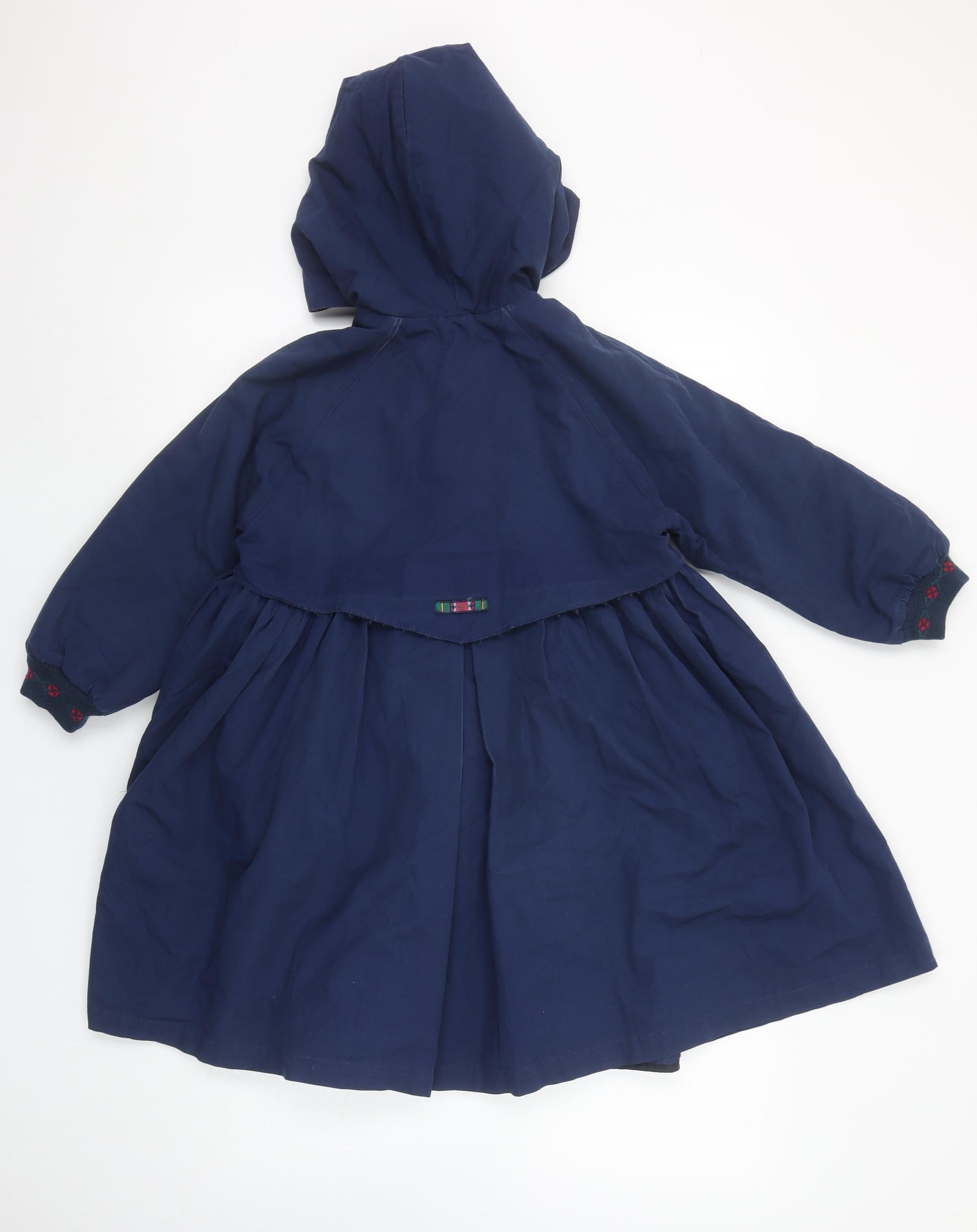 Girls Blue Hooded Rain Coat Age 6 Lined Vintage Style