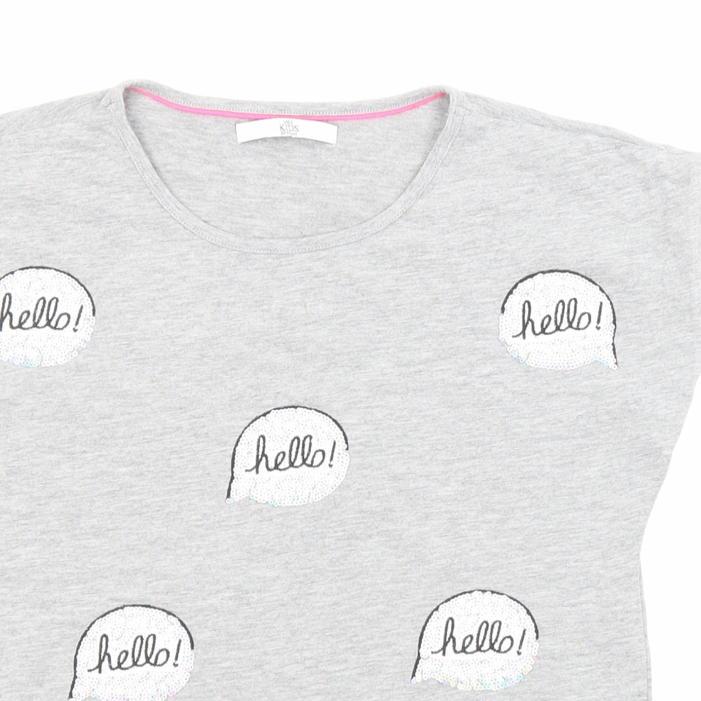 Girls Grey Cotton Basic T-Shirt Size 10-11 Years Round Neck Pullover - Hello, Sequins