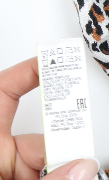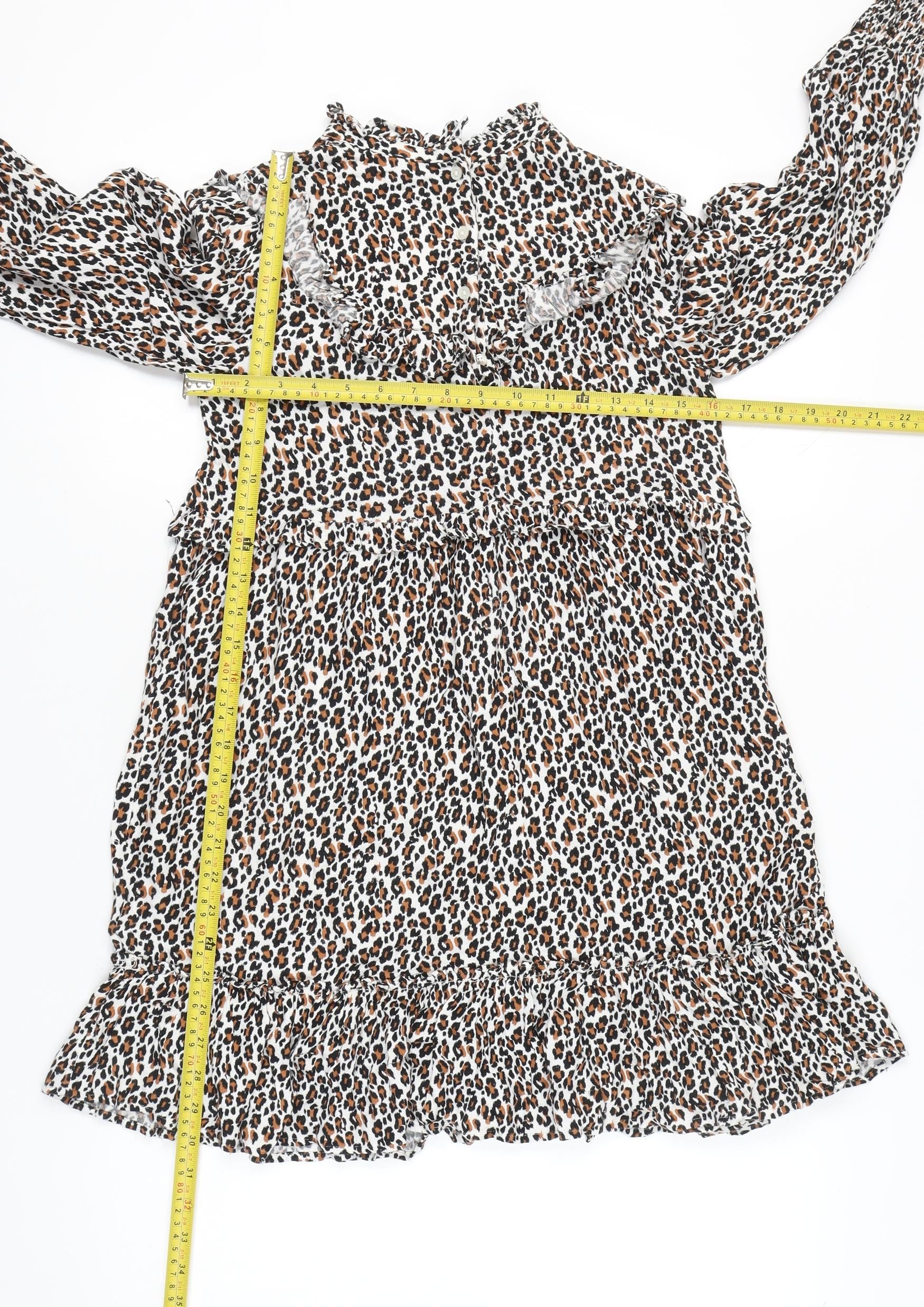 Add a touch of playful wild style to your child’s wardrobe with this gorgeous Marks and Spencer girls’ animal print dress. Crafted from soft and breathable 100% viscose, the dress drapes beautifully while providing lightweight comfort that’s perfect for year-round wear. Designed in a striking multicoloured leopard print pattern, it brings a fun yet fashionable edge to any outfit, making it ideal for casual days out, parties or family occasions. The dress features a flattering A-line silhouette that allows for ease of movement, while the knee-length cut ensures both comfort and practicality. A high neckline with delicate ruffle detailing adds a stylish touch, balanced by puffed long sleeves with smocked cuffs for a secure yet flexible fit. The zip fastening at the back makes dressing easy, while layered ruffle accents along the chest and hem create a playful finish. Suited for seasons from spring through autumn and even summer evenings, this versatile piece works equally well with tights and boots in cooler months or sandals on sunny days. Designed by Marks and Spencer, a reliable British brand known for quality and timeless style, this dress ensures durability and comfort. Although pre-loved, it remains in excellent condition with no visible stains or damage, making it a great addition at a fraction of the retail price. Measured to fit UK size 10-11 years (EUR 146), with a chest size of 29 inches, this piece is ideal for growing girls who love to showcase their personality through bold patterns. Priced affordably, it offers superb value without compromise on style. Perfect for parents looking for a practical yet fashion-forward option for everyday wear or special occasions, this animal print dress is ready to be loved again.