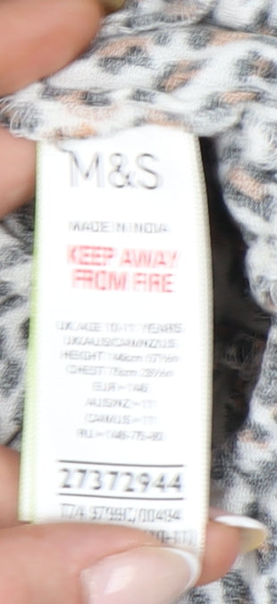Marks and Spencer Girls Beige Black Leopard Print Skater Dress 10-11Y