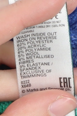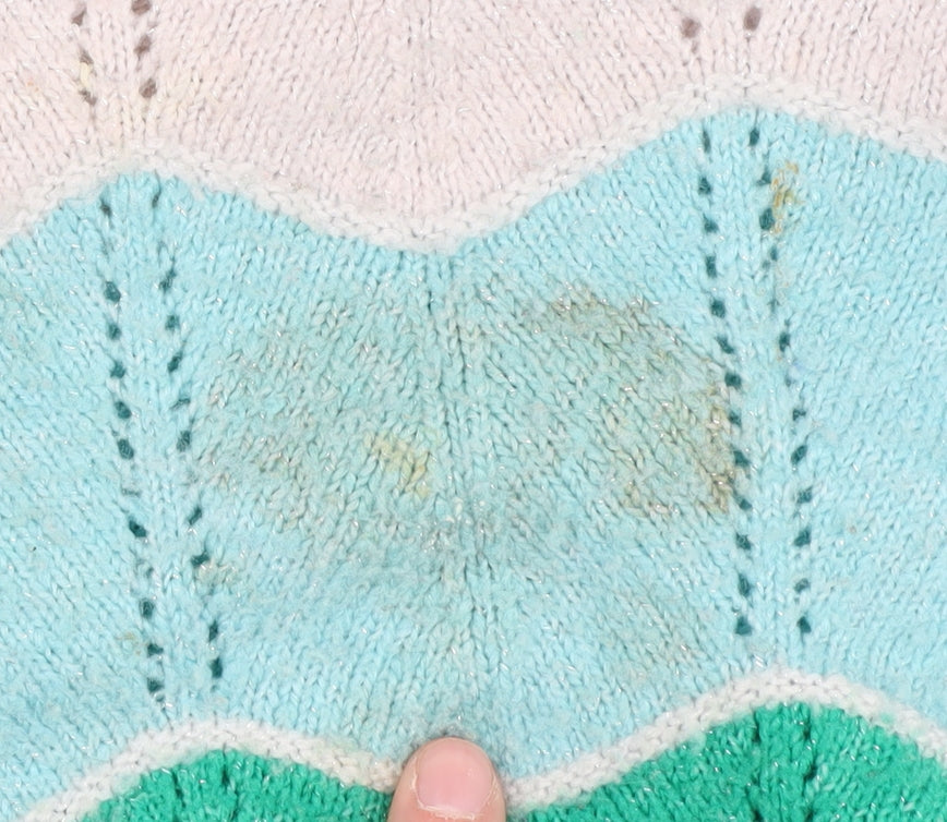 Brighten up your little one's wardrobe with this delightful Marks and Spencer chevron-patterned jumper, perfect for girls aged 5-6 years. Featuring a charming multicoloured design, this pullover is crafted with both style and practicality in mind. With a blend of polyester, acrylic, polyamide, wool, metallic fibres, and a touch of elastane, this jumper offers softness, durability, and just the right amount of stretch for comfy wear. Ideal for the autumn and winter months, the vibrant hues in pink, blue, green, and ivory add a fun pop of colour to any outfit, making it a versatile piece for casual outings, school days, or playdates. Despite showing some signs of wear, including a visible stain, this jumper remains in good condition, perfect for carefree adventures while keeping them cosy. Easy to care for, simply machine wash it as needed to maintain its charming look. Grab this stylish and comfortable sweater at a competitive price while adding a dash of warmth and style to your child's winter wardrobe.