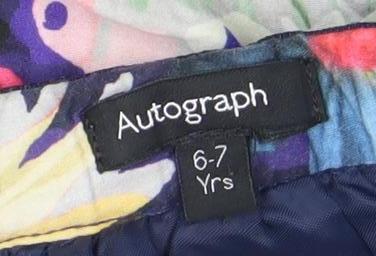 Brighten up her wardrobe with this stunning Marks and Spencer Girls Floral Pleated Skirt in size 6-7 Years. Designed with a cheerful multicoloured floral print against a navy background, this piece is a perfect choice for both casual wear and special parties. The pleated style adds extra flare and playful movement, while the bow accent at the waistband gives it an extra touch of charm. Its short length makes it easy to pair with tights, leggings, or summer tops, making it a versatile piece for every season.Crafted from high-quality woven fabric, the skirt features a main body in 100% Polyamide, paired with a soft cotton and polyester lining for comfort against the skin. It’s fully lined, ensuring a smooth and comfortable fit that little ones will enjoy all day. Machine washable for ease of care, this skirt is a practical yet stylish addition to her clothing collection. The zip closure ensures a secure fit around the waist, keeping it in place throughout the day.Ideal for school days, playdates, holidays, or parties, this beautiful floral piece will become a staple item in her wardrobe. The vibrant colour palette of pinks, blues, yellows, and greens instantly makes it eye-catching, and it’s a piece that can easily transition from spring to summer months. Pair it with a cardigan or a casual top for a dressed-down look, or dress it up with smart shoes and accessories for more formal events.This Marks and Spencer skirt offers both practicality and charm, created with the attention to detail expected of a trusted British brand. It’s an excellent, gently used condition item with no visible flaws, ensuring it can be enjoyed for seasons to come. Perfect for parents who want to invest in affordable yet quality fashion for their children, this skirt combines style, durability, and value effortlessly.